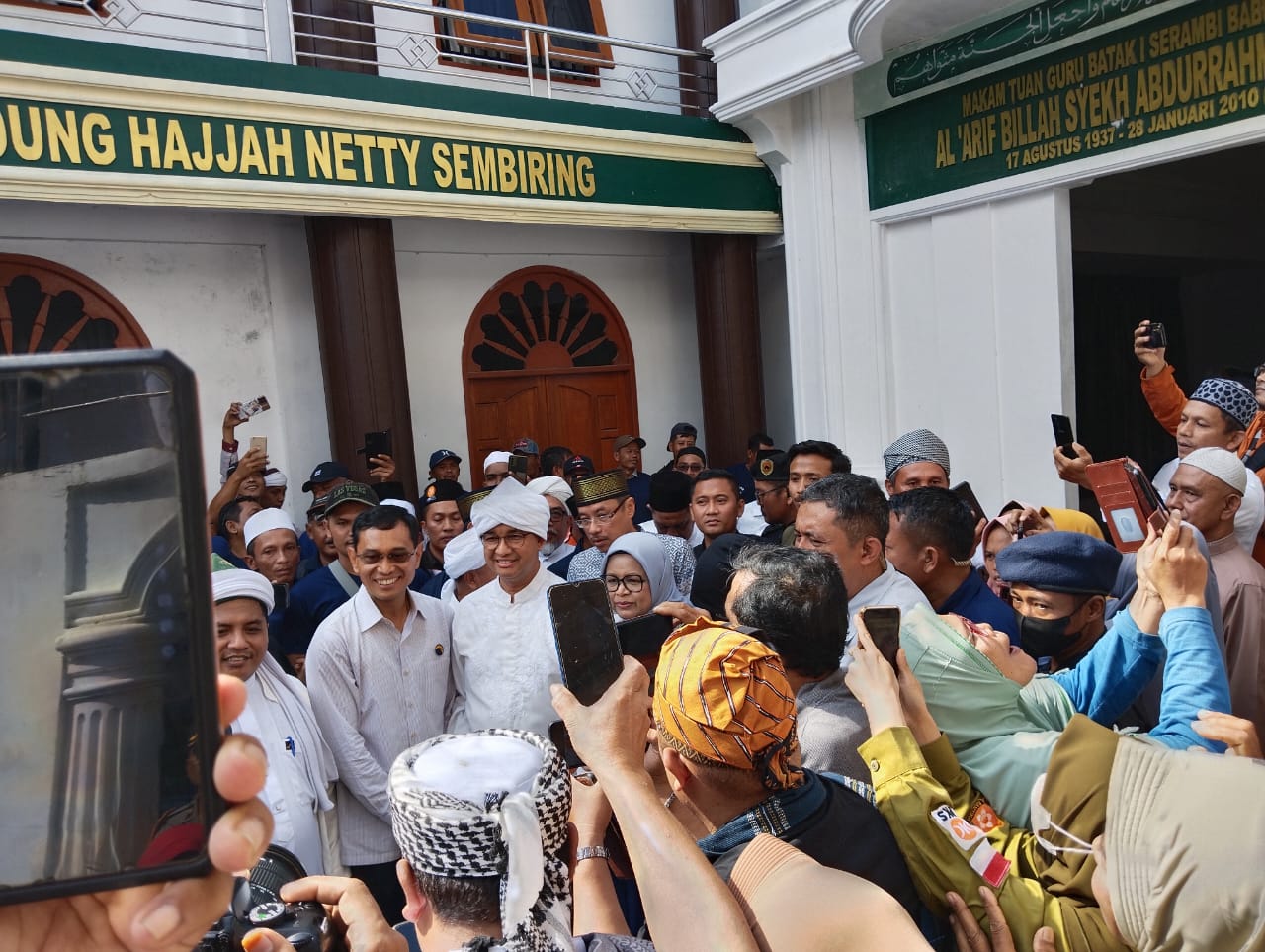 Selanjutnya pada pukul 08.00 wib, Rombongan Capres H. ANIES RASYID BASWEDAN tiba di Persulukan Serambi Babussalam Kab. Simalungun, dan disambut oleh Tuan Guru Batak Syekh Dr. Ahmad Sabban elRahmaniy Rajagukguk.Lalu pada pukul 08.15 wib, Capres H. ANIES RASYID BASWEDAN bersama ibu dijamu serapan / coffee morning di ruangan VIP serambi Babussalam Simalungun.