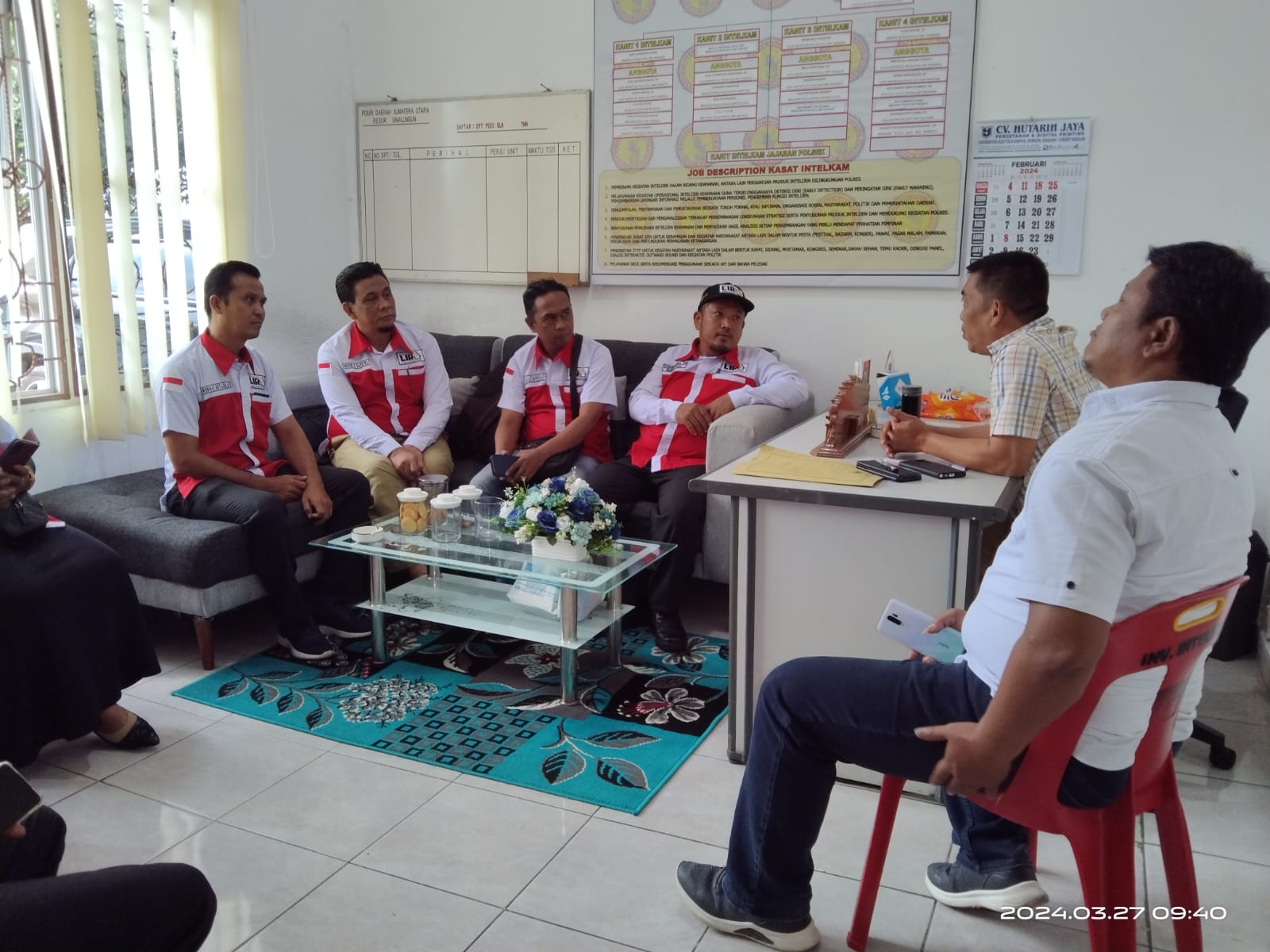 Kransnews.com, Pematang Raya – 27 Maret 2024, Kapolres Simalungun AKBP Choky Santosa Meliala di wakili kasat intel Polres Simalungun Teguh Raya Putra Sianturi dan Kanit intel 3 Polres Simalungun Bambang Sumantri menerima kunjungan kerja pengurus Dewan Pimpinan Daerah Lumbung Informasi Rakyat Kab. Simalungun di ruang kerja kasat intel Polres Simalungun pukul 10.00 wib Rabu, (27/3/2024).