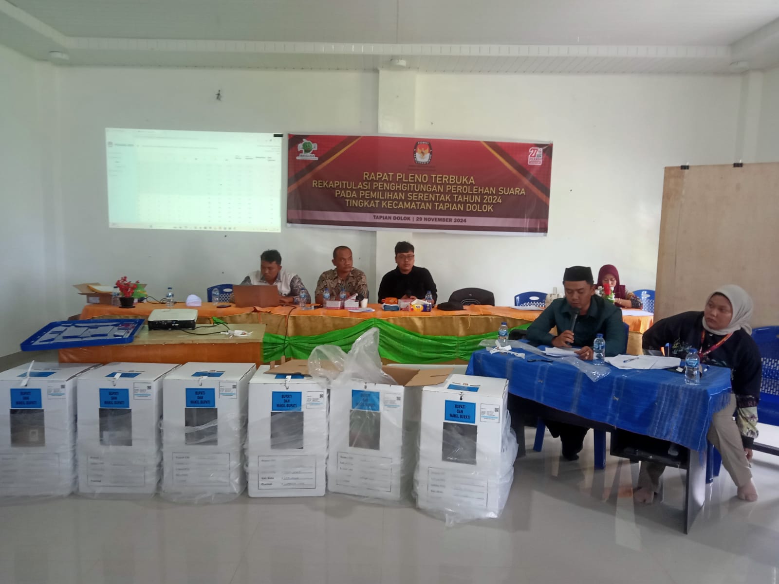 KransNews.com | Simalungun – Rapat Pleno Terbuka Perhitungan Suara Tingkat Kecamatan Tapian Dolok untuk Pemilihan Gubernur dan Wakil Gubernur serta Pemilihan Bupati dan Wakil Bupati di Kabupaten Simalungun Provinsi Sumatra Utara berlangsung, bertempat di Kantor Camat Tapian Dolok, Jumat, 30 November 2024.