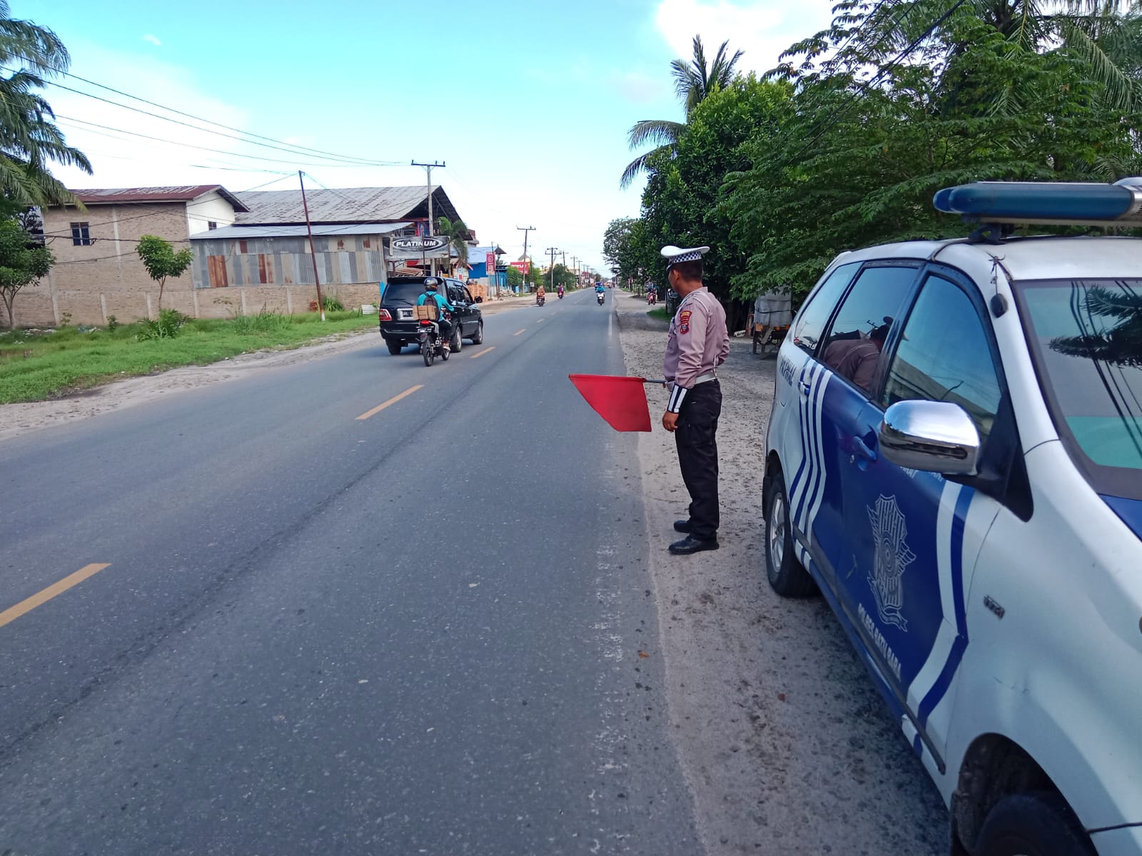 Giat dilaksanakan, Kasat Lantas Polres Batu Bara, Iptu. Andi K. Barus, S.H, M.H bersama Personil Satlantas Polres Batu Bara, Personil Pos Indrapura dan Personil Pos Sei Bejangkar.