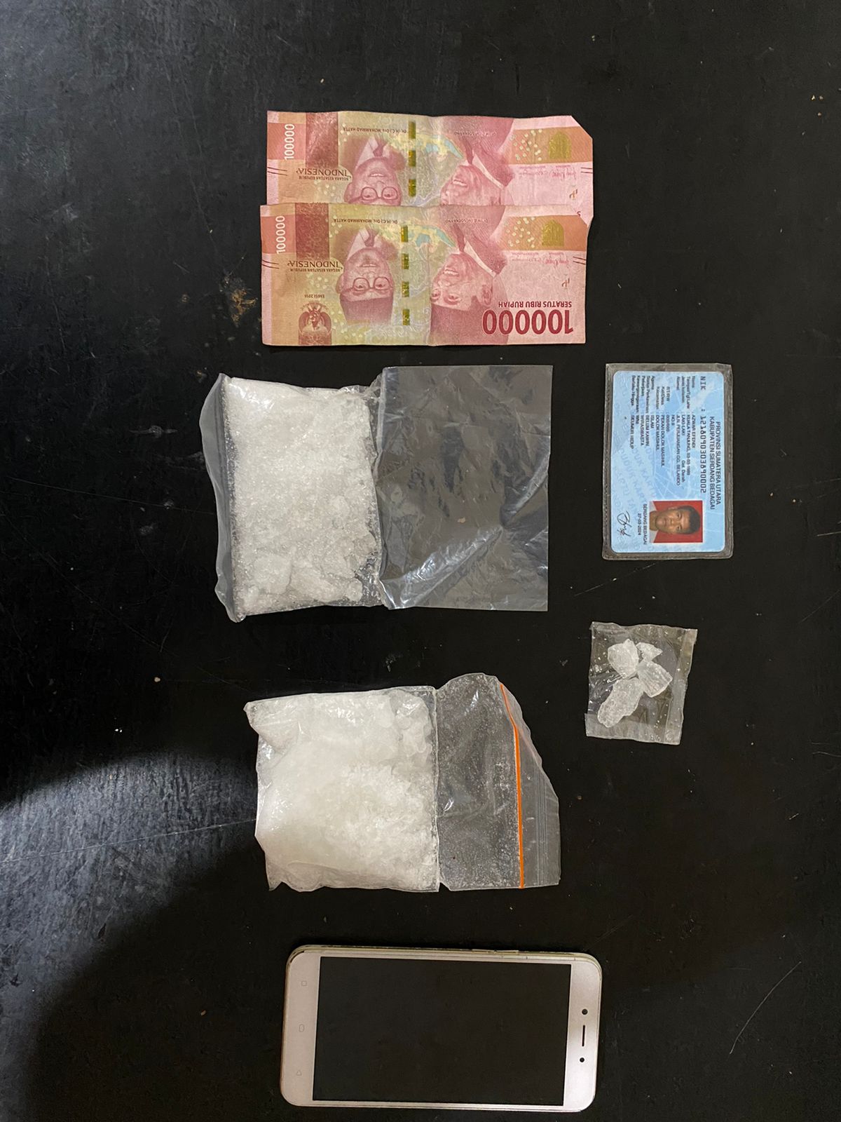 “Dari penggeledahan awal, kami menemukan dua bungkus plastik transparan berukuran besar berisi sabu. Satu bungkus ditemukan di tanah yang sempat dibuang tersangka, dan satu lagi ditemukan dalam celana tersangka,” jelas AKP Henry.