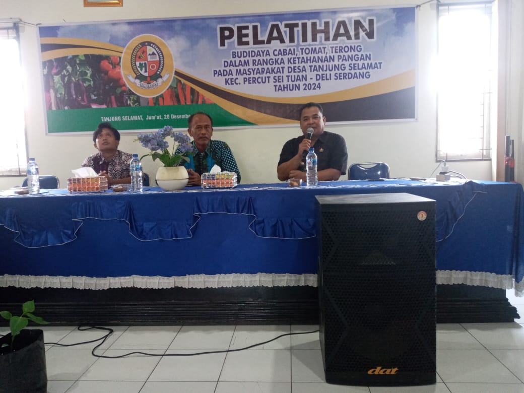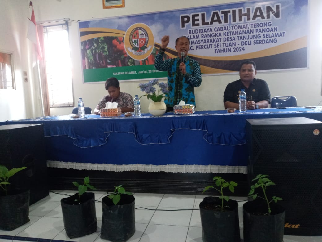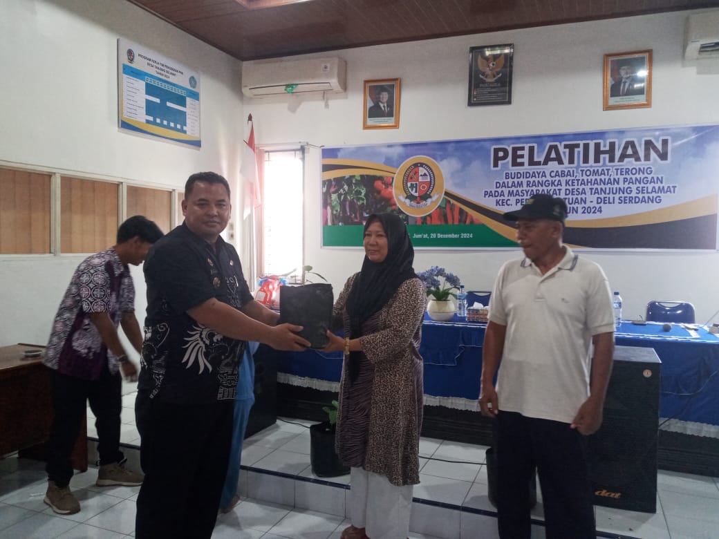 KransNews.com | Deli Serdang – Untuk meningkatkan perekonomian dan menjalankan program Ketahanan Pangan (Ketapang), Pemerintah Desa Tanjung Selamat, Kecamatan Percutseituan, Kabupaten Deli Serdang membagikan bibit cabai, tomat dan terong kepada seluruh masyarakat.