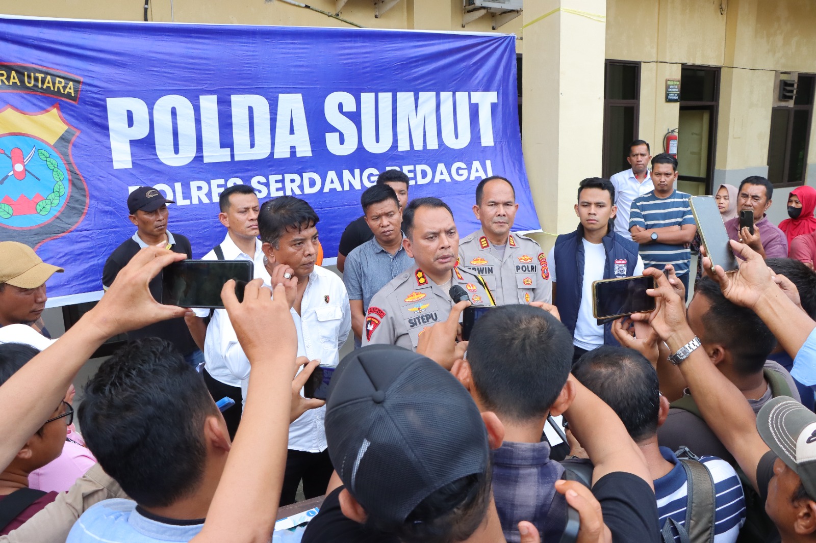 Kapolres Sergai, AKBP Jhon Sitepu saat memimpin konfrensi Press di halaman Sat Reskrim Polres Sergai, Senin, (26/12/2024) mengatakan, pada saat akan ditangkap, pelaku sempat memberikan perlawanan kepada petugas, tidak ingin konyol atas tindakan yang dilakukan tersangka, petugas segera memberi tembakan peringatan, namun tersangka tetap berusaha melawan petugas. Alhasil, petugas melakukan tindakan tegas dan terukur kepada tersangka dengan menembak kedua betis tersangka.