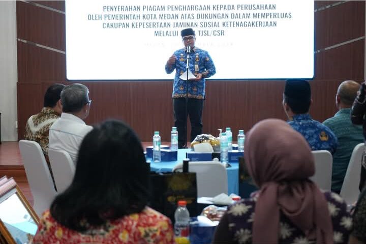 KransNews.com | Medan – Sebagai bentuk apresiasi Pemko Medan memberikan penghargaan kepada perusahaan yang telah mendukung perluasan cakupan kepesertaan Jaminan Sosial Ketenagakerjaan melalui dana TJSL/CSR.