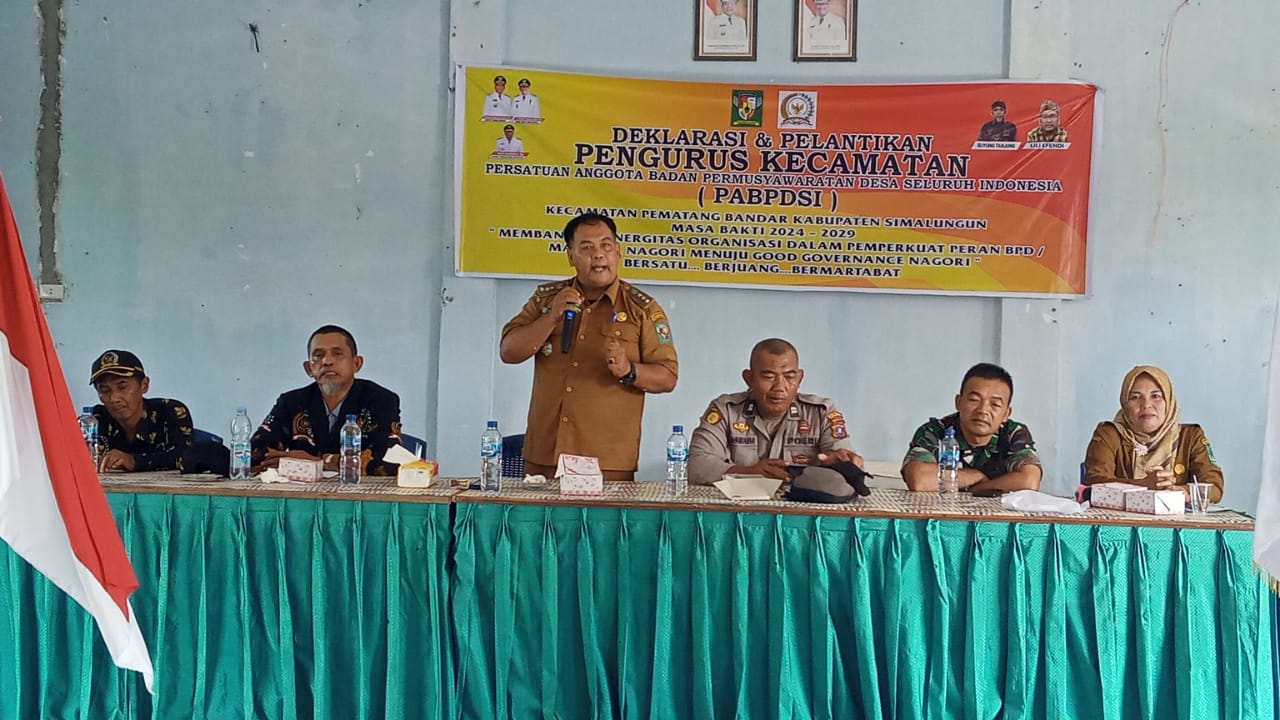 Dalam arahannya Pahot H.Siregar Camat Pematang Bandar menyampaikan ucapan selamat kepada Pengurus PABPDSI terlantik. “Kami pihak Pemerintahan mengucapkan selamat kepada para Pengurus PABPDSI terlantik, semoga kiranya dapat menjalankan tugas dan mampu nenjalin kemitraan yang baik dengan Pemerintahan Nagori. Maujana merupakan mitra kerja yang bertugas mengawasi dan melakukan evaluasi kinerja Pangulu, jika ada perbedaan maka selesaikanlah dengan musyawarah dan mupakat, karena keputusan serta kesepakatan Pangulu dan Maujana merupakan hal yang tertinggi untuk pembangunan di Nagori,” jelas Camat.