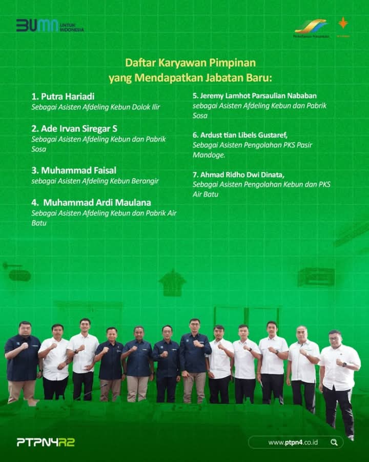 Ketujuh karyawan pimpinan PTPN IV Regional II yang baru menerima SK adalah sebagai berikut: