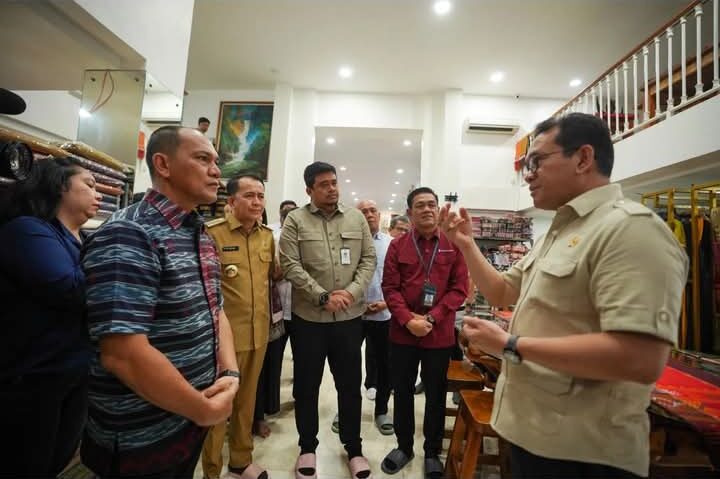 KransNews.com | Medan – Wali Kota (Walkot) Medan Bobby Nasution dan Pj Gubernur Sumut (Gubsu) Agus Fatoni mendampingi Menteri Perdagangan (Mendag) RI Budi Santoso mengunjungi Galeri Ulos Sianipar di Gang Pendidikan, Kelurahan Binjai, Kecamatan Medan Denai (17/12). Kunjungan itu dilakukan guna melihat hasil kerajinan tekstil ulos dan songket tradisional suku Batak sebagai bentuk dukungan terhadap pelaku UMKM.