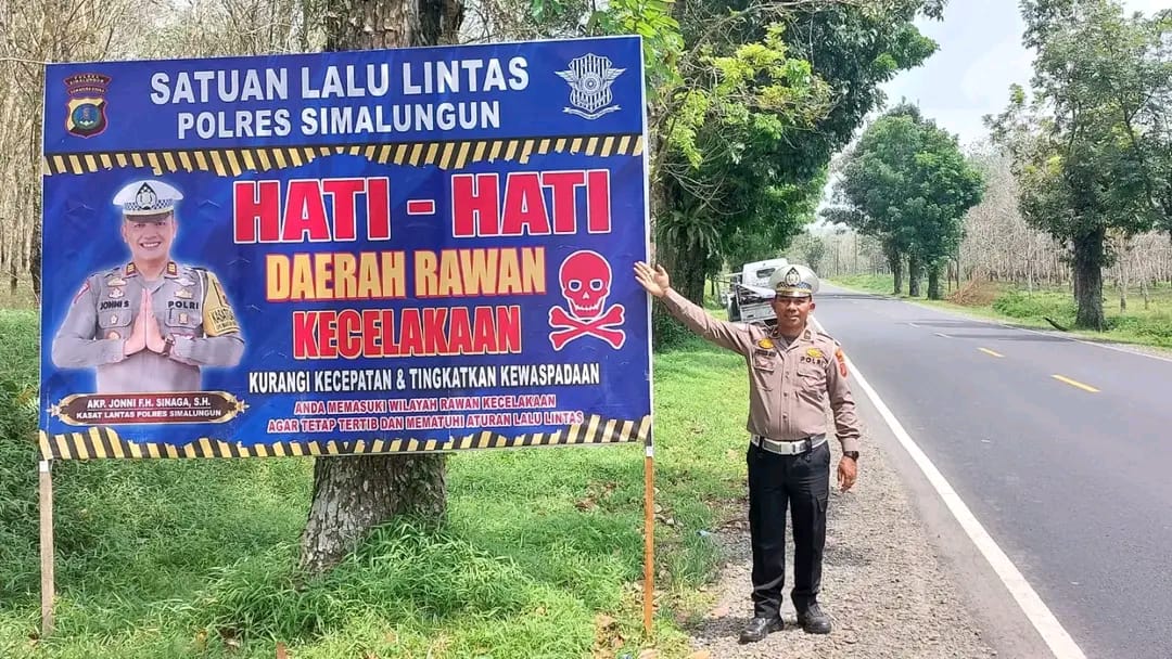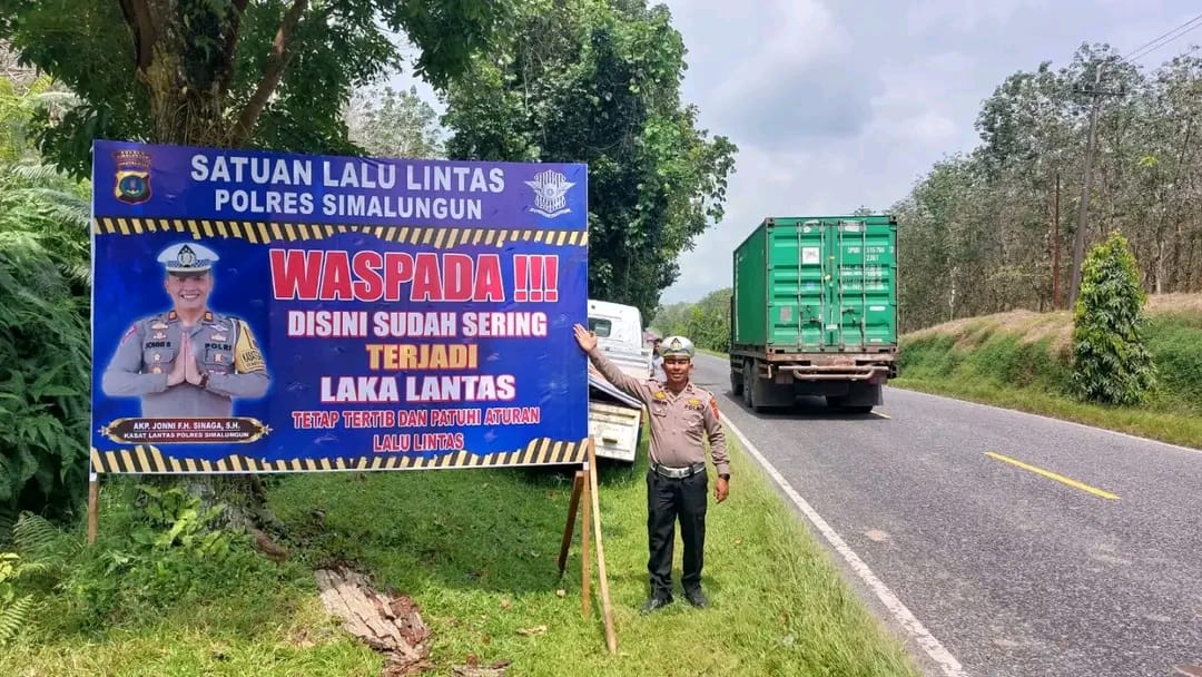 KransNews.com |Simalungun – Satuan Lalu Lintas (Satlantas) Polres Simalungun melancarkan kampanye pencegahan kecelakaan lalu lintas melalui pemasangan baliho di empat lokasi strategis sepanjang jalur Pematangsiantar-Medan pada Kamis (23/1/2025). Upaya ini dilakukan sebagai bagian dari strategi komprehensif untuk menurunkan angka pelanggaran dan kecelakaan lalu lintas di wilayah hukum Polres Simalungun.