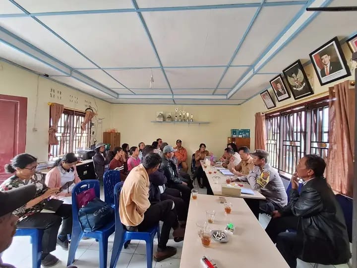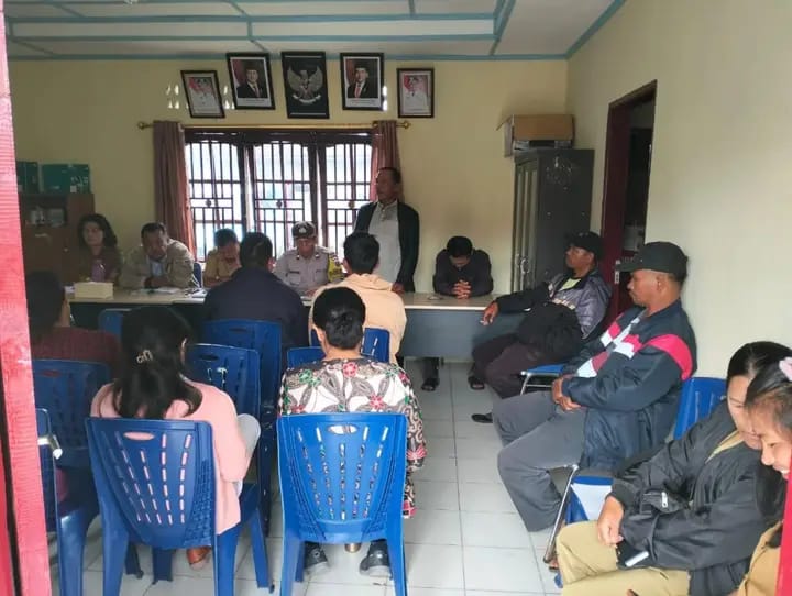 KransNews.com | Simalungun – Personil Bhabinkamtibmas Polsek Saribudolok AIPDA E. Siringo Ringo bersama Kasi Ekbang Kecamatan Silimakuta, Rehulina Tarigan, Pangulu Nagori Purbatua Etek Joison Rafiuddin Damanik serta Perangkat Nagori dan Tokoh Masyarakat, tokoh agama mengikuti Musyawarah Rencana Pembangunan (Musrenbang) di Kantor Pangulu Nagori Purbatua Etek, Senin (06/01/2025).