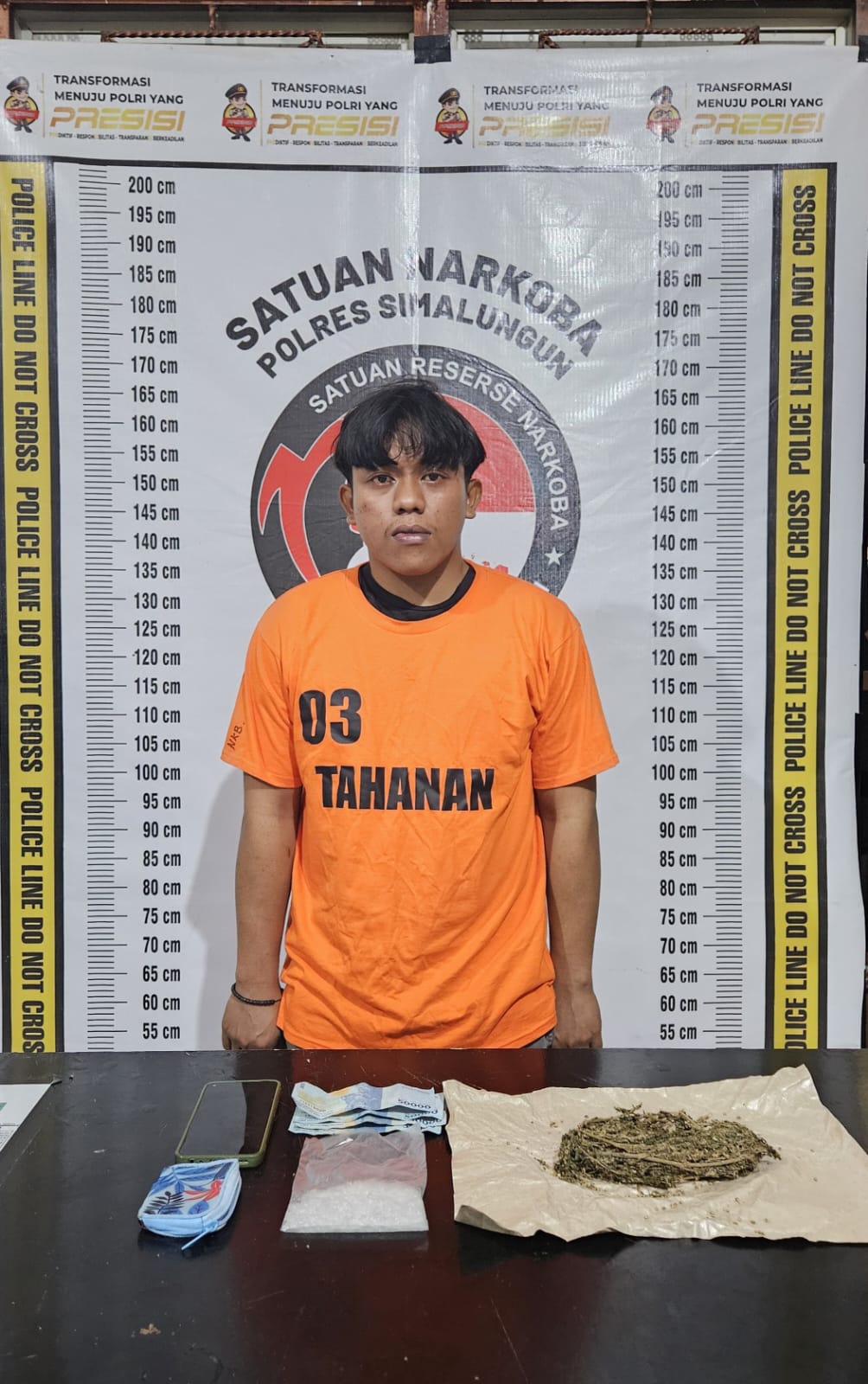 KransNews.com | Simalungun – Satuan Reserse Narkoba Polres Simalungun berhasil mengamankan seorang tersangka pengedar narkoba dengan barang bukti sabu dan ganja sebanyak 70 gram lebih di wilayah Kecamatan Bandar, Kabupaten Simalungun, Kamis (16/1/2025).