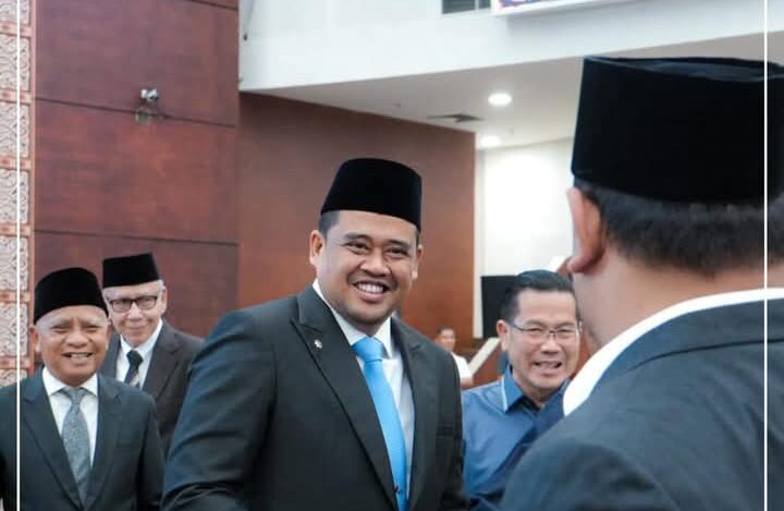 “Insya Allah amanah yang diberikan ini kami jalankan sebaik-baiknya,” ungkap Bobby Nasution usai mengikuti Rapat Paripurna DPRD Sumut Pengumuman Penetapan Pasangan Calon Gubernur dan Wakil Gubernur Sumatera Utara Terpilih Periode 2025-2030, Jumat (7/2/2025) di gedung DPRD Sumut.