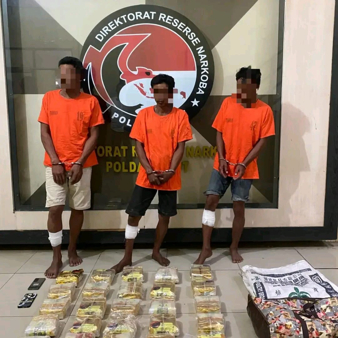 “Tim langsung melakukan penyelidikan dan mendapati tiga pelaku sesuai dengan ciri-ciri yang dilaporkan. Setelah dilakukan penggeledahan, ditemukan satu karung berisi 25 bungkus teh China berwarna kuning merk Guan Yin Wang yang diduga berisi sabu dengan berat total sekitar 25.000 gram,” ujarnya.