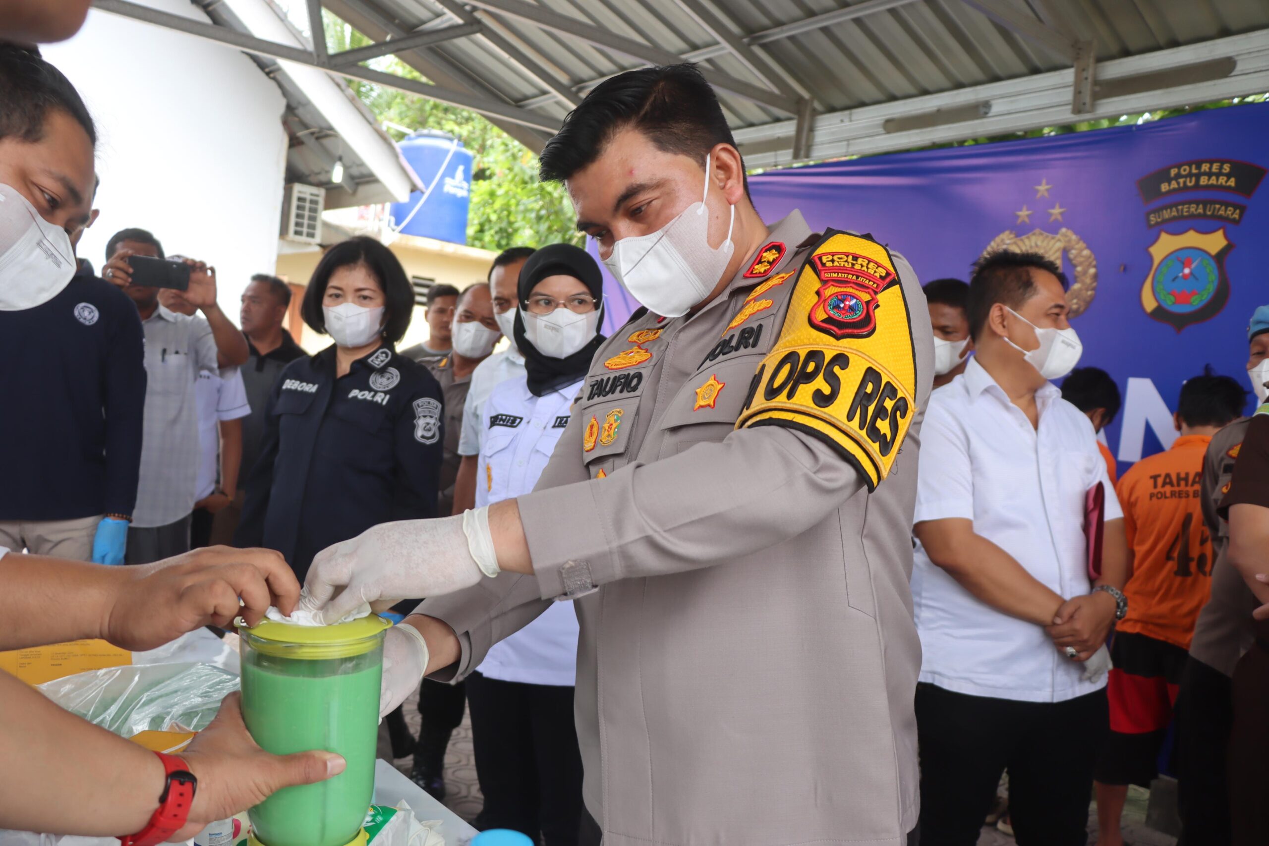 Dalam acara tersebut Kapolres didampingi Kabid Labfor Polda Sumut AKBP Debora M. Hutagaol, S.Si, M.Farm, dan Kasat Narkoba AKP Fery Kusnadi, S.H, M.H secara bersama menyaksikan pemusnahan barang bukti berupa Sabu seberat 5.990,46 dan Pil Ekstasi sebanyak 14.878 butir dengan berat 5.774,33 dengan tersangka berinisial MI (48) Warga Aceh Timur, TRR (28) Warga Aceh Tamiang dan FN (27) Warga Jawa Timur.