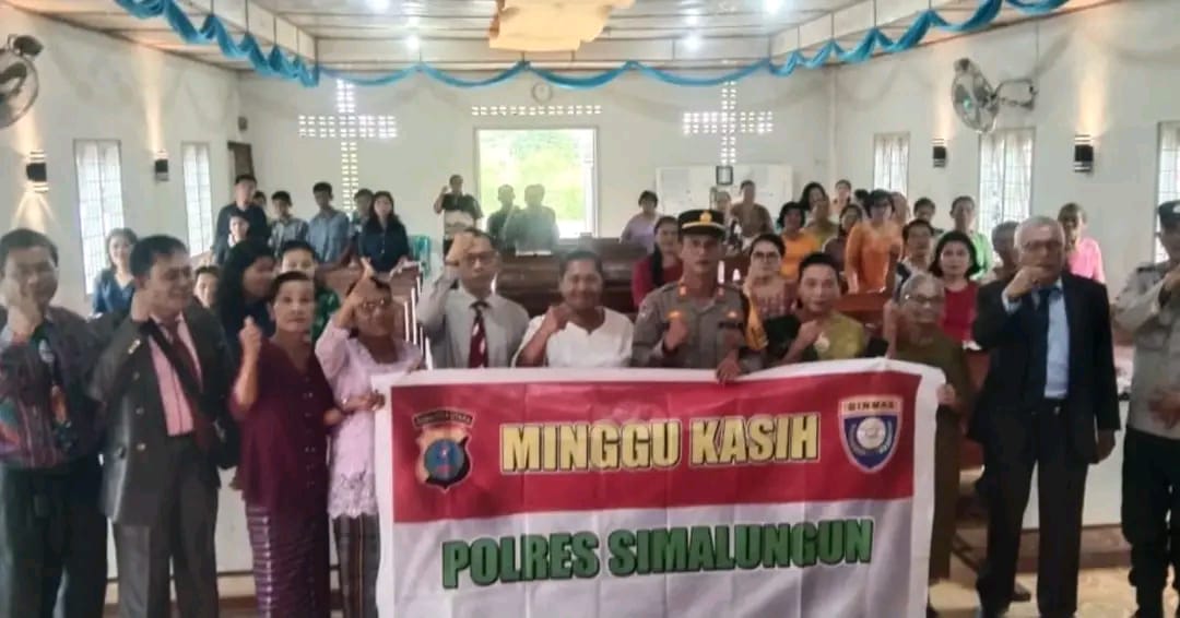 KransNews.com | Simalungun – Polres Simalungun melalui Satuan Binmas (Sat Binmas) menggelar kegiatan Minggu Kasih di Gereja GKPI Huta Baru, Nagori Dolok Parmonangan, Kecamatan Dolok Panribuan, Kabupaten Simalungun, Minggu (23/2/2025) pukul 10.00 WIB. Kegiatan ini dihadiri oleh sekitar 150 jemaat dan dipimpin langsung oleh Kasat Binmas Polres Simalungun, AKP Esron Siahaan.