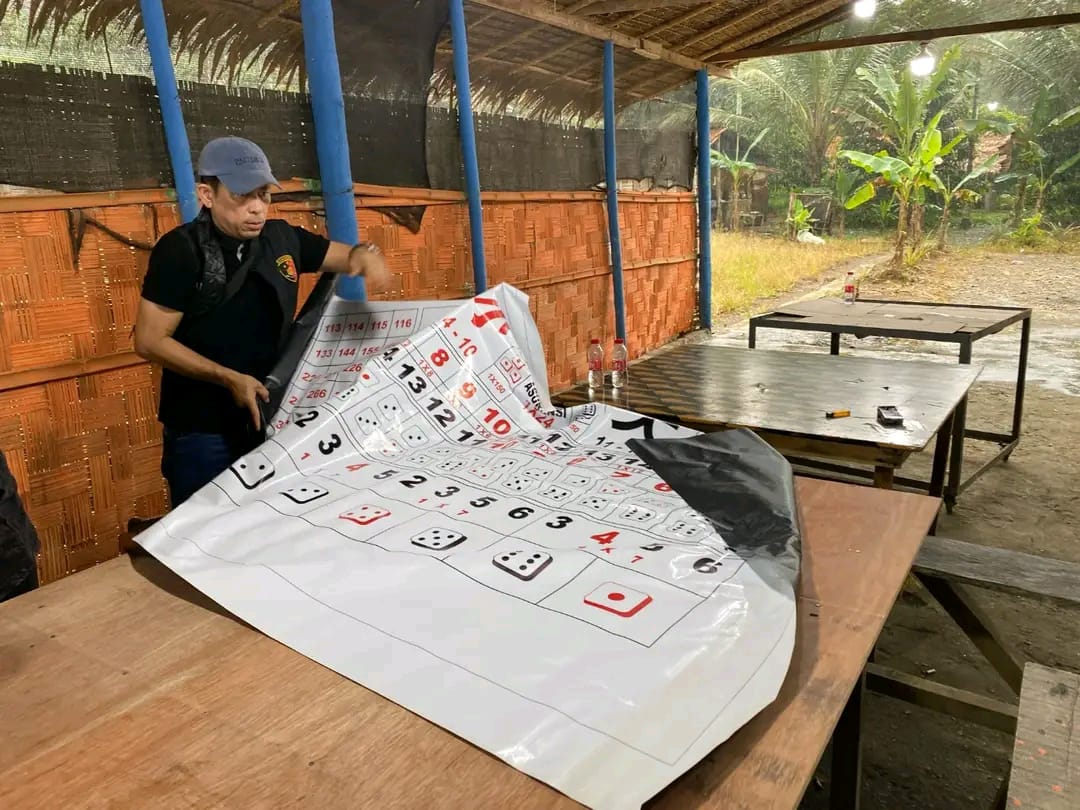 Meski demikian, tim gabungan berhasil mengamankan sejumlah barang bukti yang diduga digunakan dalam aktivitas perjudian. Beberapa barang yang diamankan antara lain satu unit mesin tembak ikan, lima buah terpal alas untuk permainan dadu, enam set dam batu, serta peralatan lain yang biasa digunakan dalam praktik perjudian.