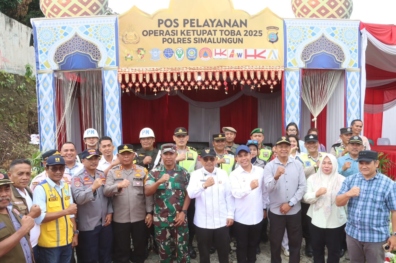 KransNews.com |Simalungun – Dalam rangka memastikan kelancaran arus mudik dan balik Lebaran Idul Fitri 1446 Hijriah, Forkopimda Kabupaten Simalungun melakukan kunjungan ke sejumlah Pos Pengamanan dan Pos Pelayanan Operasi Ketupat Toba 2025 di wilayah hukum Polres Simalungun. Kunjungan ini dipimpin langsung oleh Kapolres Simalungun, AKBP Marganda Aritonang, S.H., S.I.K., M.M., bersama Bupati Simalungun Dr. H. Anton Achmad Saragih, Wakil Bupati Simalungun Benny Gusman Sinaga, dan unsur Forkopimda lainnya.