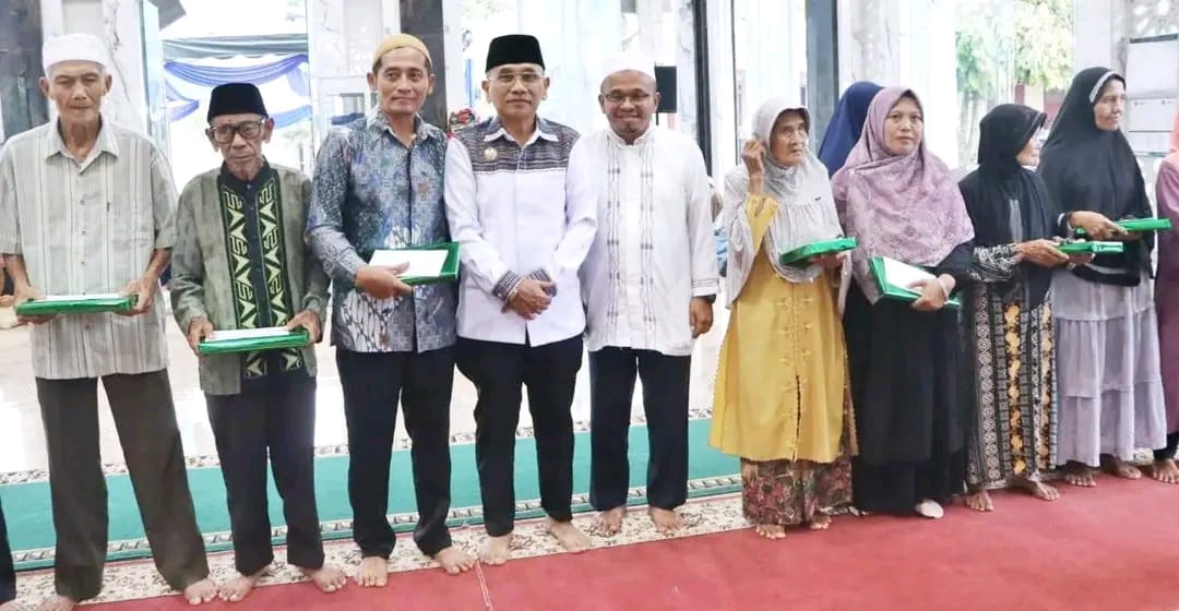 Usai menyampaikan sambutan, selanjutnya Bupati menyerahkan bantuan untuk Masjid Nurul Hikmah Kelurahan Aman Sari berupa sajadah panjang dan loudspeaker portable dan Uang 5 Juta Rupiah kepada BKM Masjid Nurul Hikmah Kelurahan Amansari.