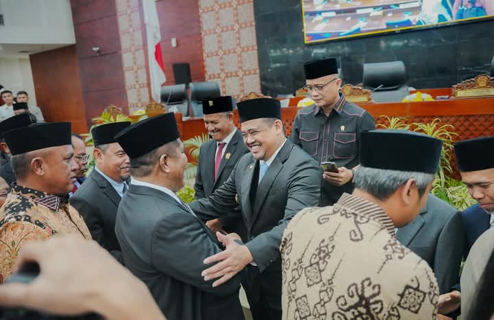 KransNews.com | Medan – Gubernur Sumatera Utara terpilih, Bobby Nasution, mengawali hari pertamanya dengan menghadiri acara Pisah Sambut dan Serah Terima Jabatan Gubernur dan Wakil Gubernur di Provinsi Sumatera Utara. Acara ini berlangsung di Gedung DPRD Provinsi Sumatera Utara, Senin (3/3/2025).