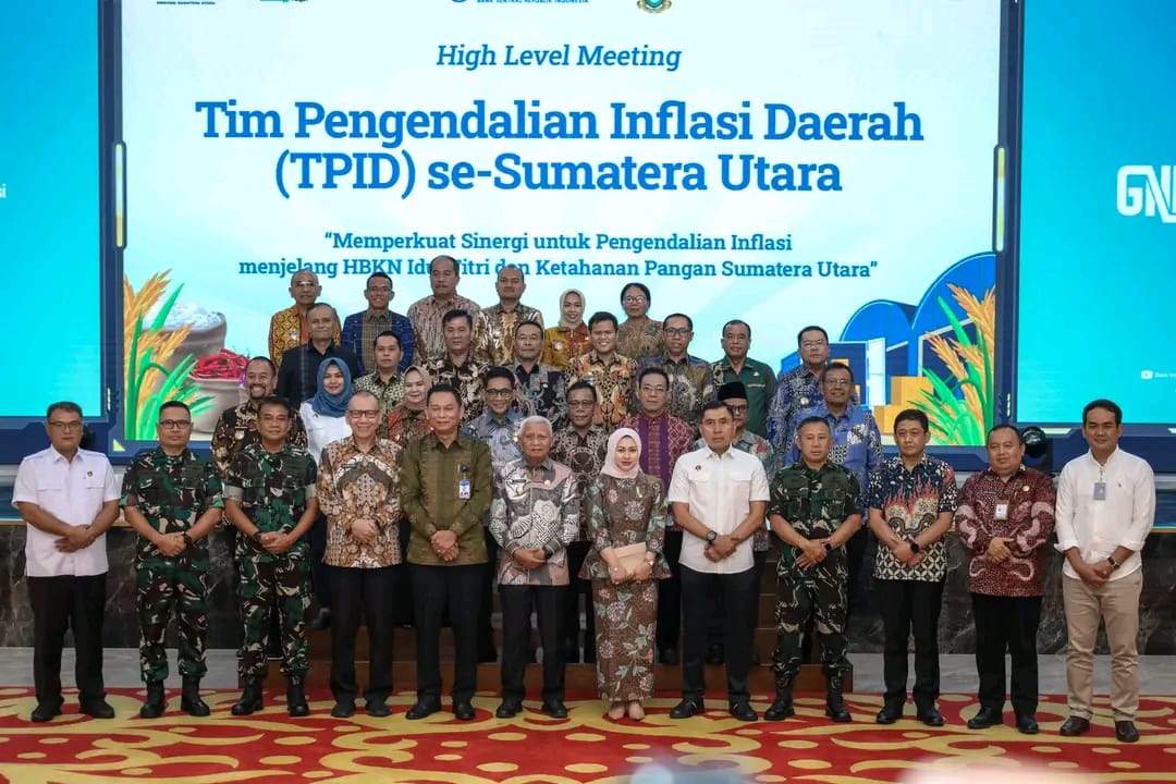 KransNews.com | Medan – Wali Kota Pematangsiantar Wesly Silalahi SH MKn mengikuti High Level Meeting (HLM) Tim Pengendalian Inflasi Daerah (TPID) se-Provinsi Sumatera Utara (Sumut) Tahun 2025 di Aula Raja Inal Siregar Lantai 2, Kantor Gubernur Sumut, Jalan Diponegoro Medan, Jumat (14/03/2025). HLM TPID tersebut dalam Rangka menjaga stabilitas harga dan kecukupan pasokan pada Bulan Ramadhan dan Hari Raya Idul Fitri 2025, sekaligus upaya pengendalian inflasi dan mendorong ketahanan pangan di Provinsi Sumut.