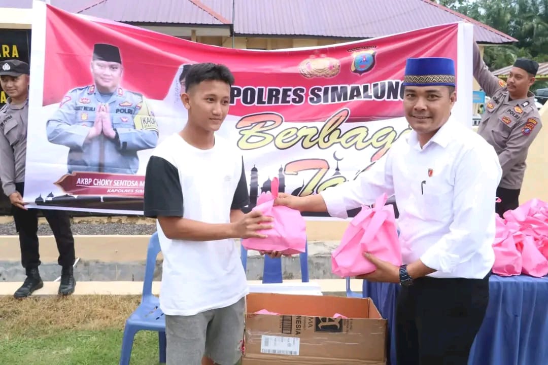 KransNews.com | Simalungun – Polres Simalungun menggelar kegiatan berbagi takjil gratis kepada masyarakat Kabupaten Simalungun yang sedang melaksanakan ibadah puasa di bulan Ramadhan. Kegiatan tersebut dipimpin langsung oleh Kapolres Simalungun AKBP Choky Sentosa Meliala, S.I.K., S.H., M.H., pada Senin, 10 Maret 2025, sekitar pukul 17.00 WIB hingga selesai. Lokasi pembagian takjil bertempat di depan Markas Komando (Mako) Polsek Tanah Jawa, Jalan SM Raja, Nagori Balimbingan, Kecamatan Tanah Jawa, Kabupaten Simalungun.
