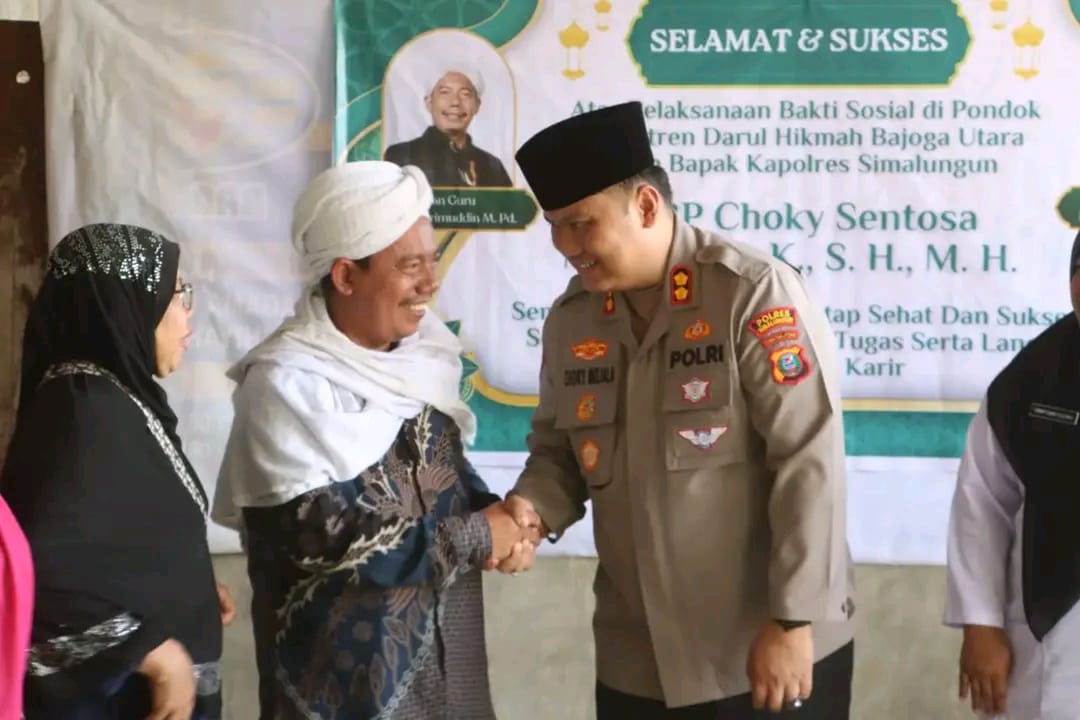 KransNews.com | Simalungun – Kepolisian Resor (Polres) Simalungun menggelar kegiatan bakti sosial di Pondok Pesantren Darul Hikmah Nagori Bah Joga Utara, Kecamatan Jawa Maraja Bah Jambi, Kabupaten Simalungun pada Rabu (12/3/2025). Kegiatan yang berlangsung dari pukul 13.45 hingga 15.00 WIB ini merupakan bagian dari program Silaturahmi Ramadhan yang rutin dilaksanakan Polres Simalungun selama bulan suci Ramadhan 1446 H.