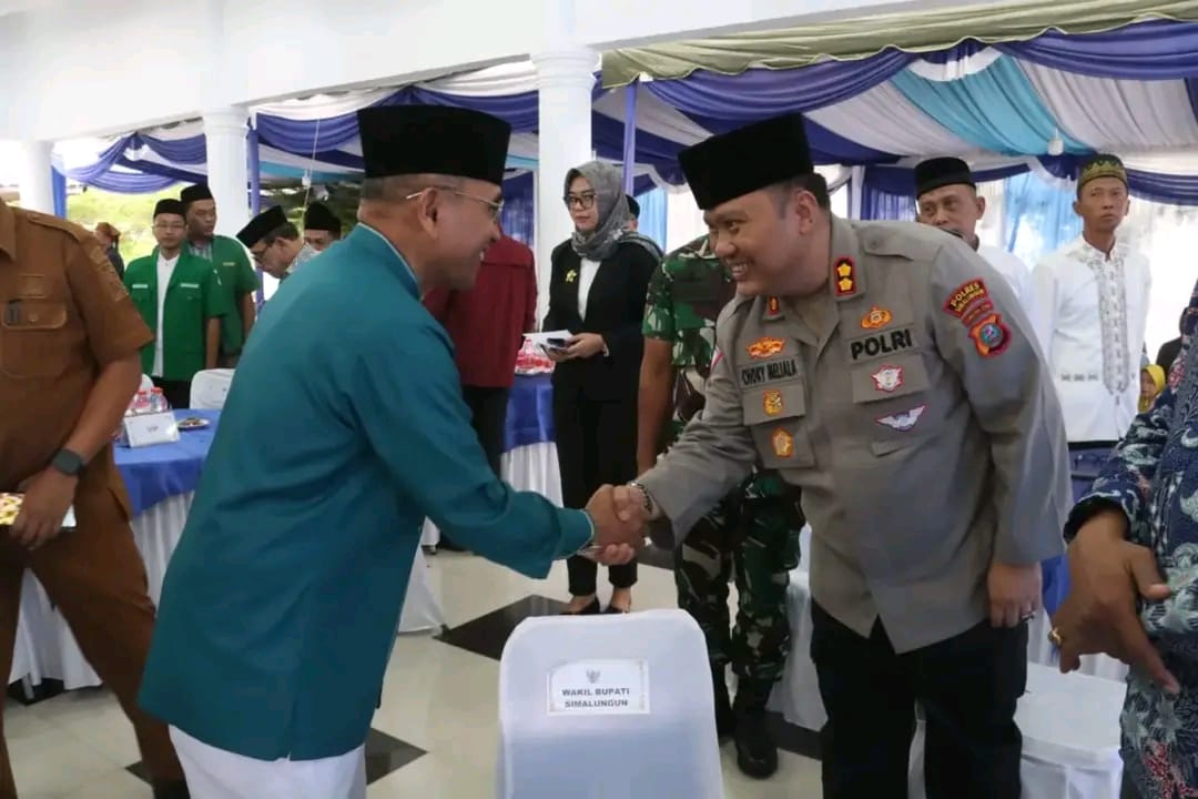 KransNews.com |Simalungun – Kapolres Simalungun AKBP Choky Sentosa Meliala, S.I.K., S.H., M.H. menghadiri acara Silaturahmi dan Buka Puasa Bersama Pemerintah Kabupaten Simalungun dengan Masyarakat Tahun 1446 Hijriah/2025 Masehi. Acara yang sekaligus menjadi syukuran memasuki Rumah Dinas Bupati dan Wakil Bupati Simalungun Masa Jabatan 2025-2030 ini berlangsung di Pendopo Rumah Dinas Bupati Simalungun, Jalan Sutomo, Kecamatan Raya, Kabupaten Simalungun pada Senin sore.