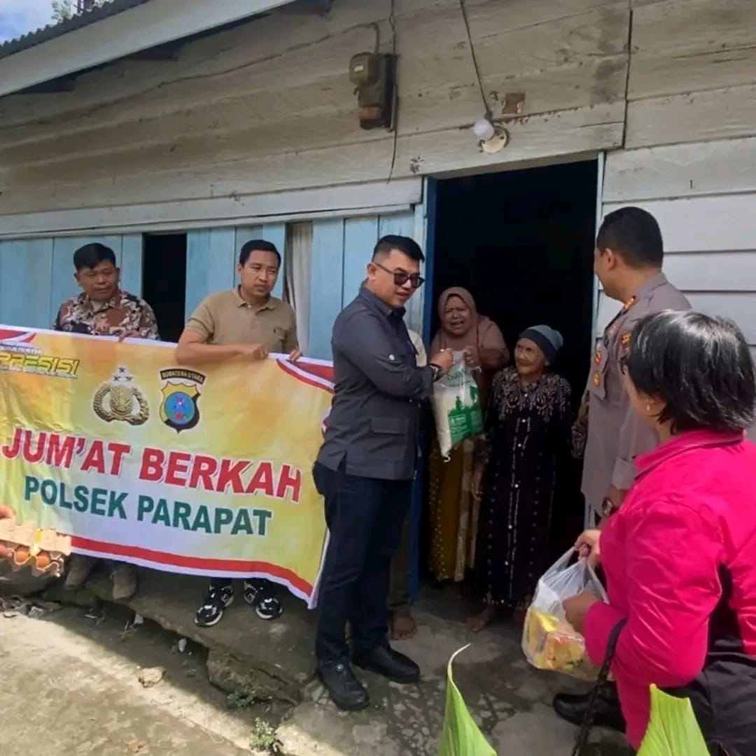 KransNews.com | Simalungun – Kapolsek Parapat, AKP Manguni WD Sinulingga, SH, MH, bersama dengan Kepala Rumah Sakit Parapat, dr. Jimmy Gultom, dan anggota Polsek Parapat, melaksanakan kegiatan “Jumat Berkah” dengan membagikan sembako kepada warga Parapat yang kurang beruntung di segi ekonomi.