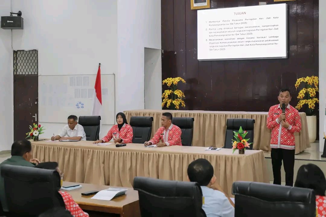 Rapat Persiapan dan Pembentukan Panitia Peringatan Hari Jadi ke-154 Tahun Kota Pematangsiantar dipimpin Wali Kota Wesly Silalahi SH MKn diwakili Wakil Wali Kota Herlina, di Ruang Data Pemko Pematangsiantar, Rabu (13/03/2025) siang.