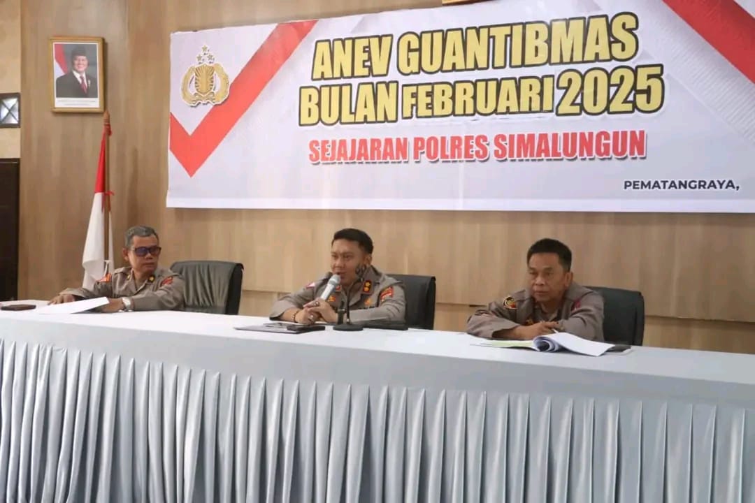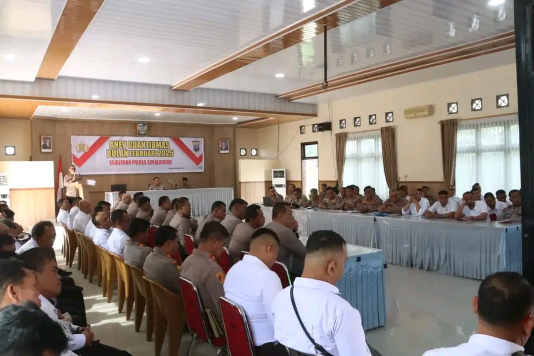 KransNews.com |Simalungun – Polres Simalungun menggelar kegiatan Analisa Evaluasi (ANEV) Gangguan Kamtibmas Bulan Februari 2025 pada Senin (03/03/2025) di Aula Andar Siahaan, Markas Komando Polres Simalungun. Kegiatan ini dihadiri oleh seluruh jajaran pimpinan Polres Simalungun.