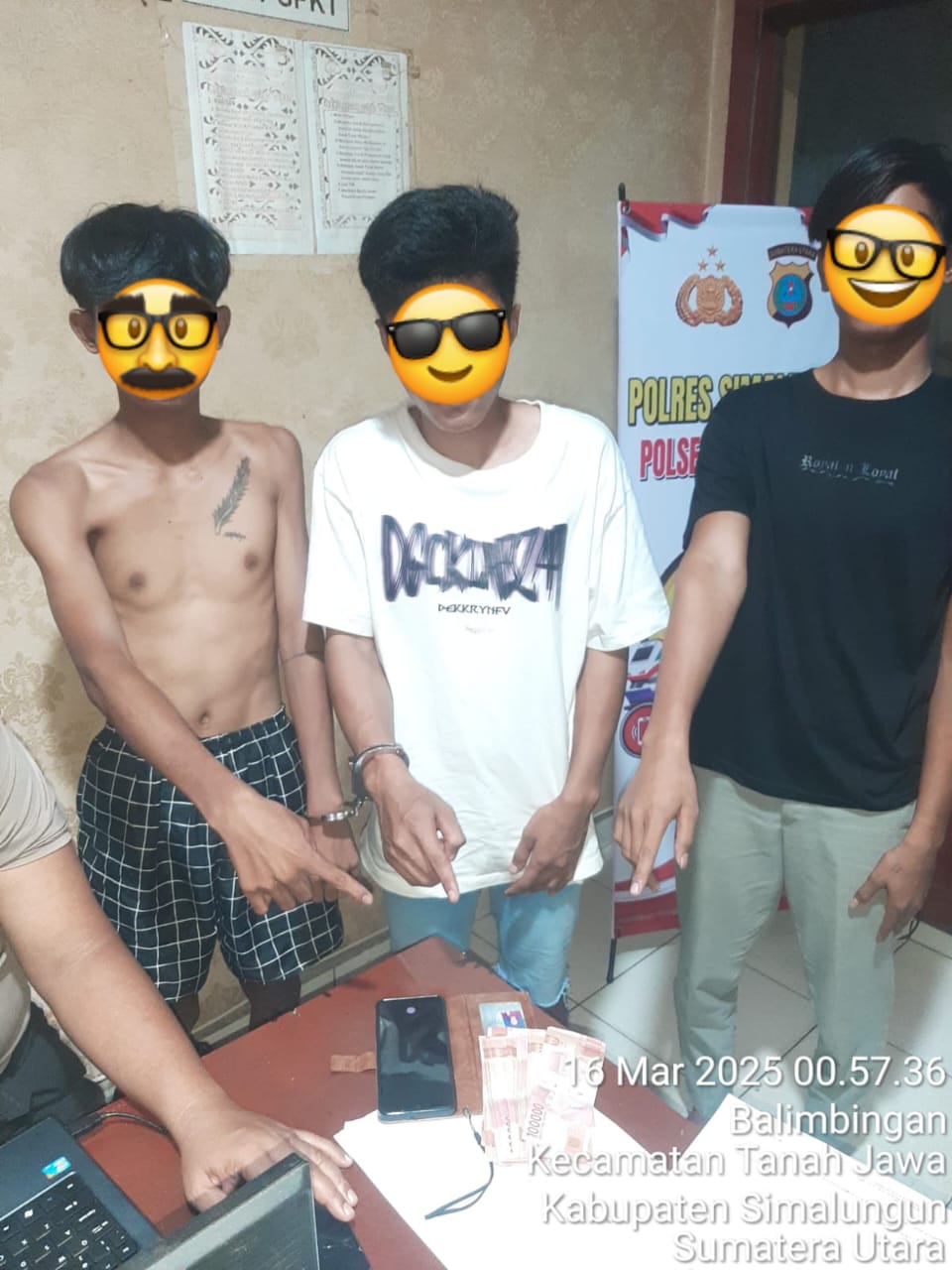 Kasi Humas Polres Simalungun AKP Verry Purba SH dikonfirmasi pada Minggu (16/3/025) malam mengatakan ketiga pelaku tersebut yakni Alaw Prasetia alias Alaw (22) warga Kampung Baru Sidomulyo, Nagori Balimbingan, Kecamatan Tanah Jawa, Kabupaten Simalungun, Jejen (19) warga Rintis IX Balimbingan, Nagori Balimbingan, Kecamatan Tanah Jawa, Kabupaten Simalungun dan Muhamad Riski alias Riski (18) warga Dusun II Baja Dolok, Nagori Baja Dolok, Kecamatan Tanah Jawa, Kabupaten Simalungun.