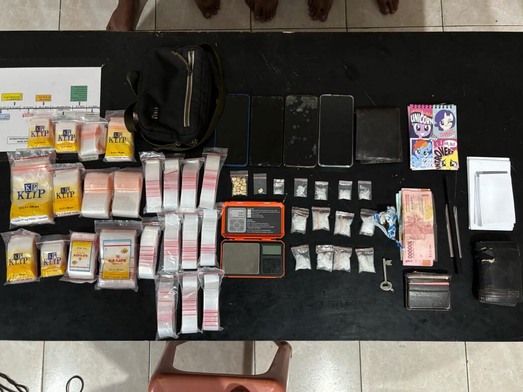 Kasi Humas menambahkan, selain sabu turut diamankan barang bukti lainnya seperti 1 unit Hp Android merk Vivo warna putih, 1 unit Hp Android merk Redmi, 1 unit Hp Android merk Tecno Pova, 1 unit Hp Android merk Vivo warna biru, 1 unit Hp Android merk Vivo warna merah, Uang Tunai Rp 1.100.000, 23 bal plastik klip kosong, 1 buah timbangan digital, 4 buah sekop terbuat dari pipet, 38 lembar amplop, 1 buah buku catatan hasil penjualan, 3 buah dompet, 1 buah tas sandang merk Eiger dan 1 buah kunci Kost.