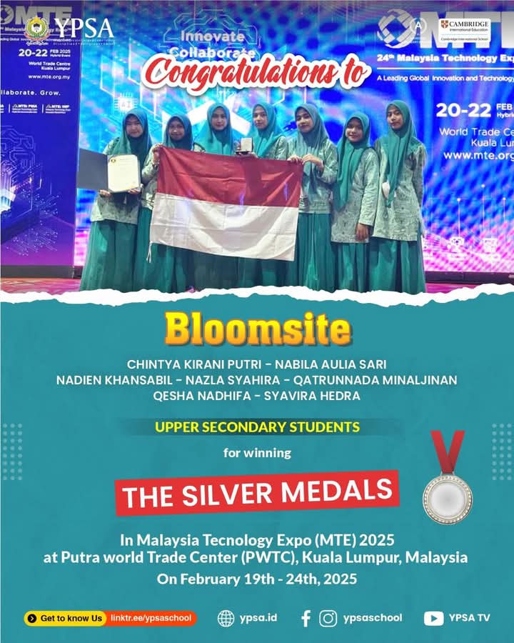 “Alhamdulillah, ini adalah kesempatan luar biasa bagi para siswa-siswi SMA YPSA untuk mengembangkan potensi mereka di bidang inovasi dan teknologi. Kami yakin mereka akan membawa nama baik YPSA dan Indonesia di kancah internasional,” kata Dahliana.