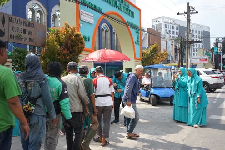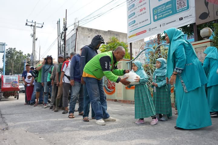 KransNews.com |Medan – Siswa-siswi Kelompok Bermain Taman Kanak-kanak (KBTK) YPSA melaksanakan kegiatan membagikan sembako kepada masyarakat, ojek online, dan tukang becak di depan gerbang Yayasan Pendidikan Shafiyyatul Amaliyyah (YPSA), Jalan Setia Budi, Kota Medan, Senin (09/03/2025). Kegiatan ini merupakan bagian dari pembelajaran tentang nilai-nilai sosial dan kepedulian terhadap sesama di bulan Ramadhan.