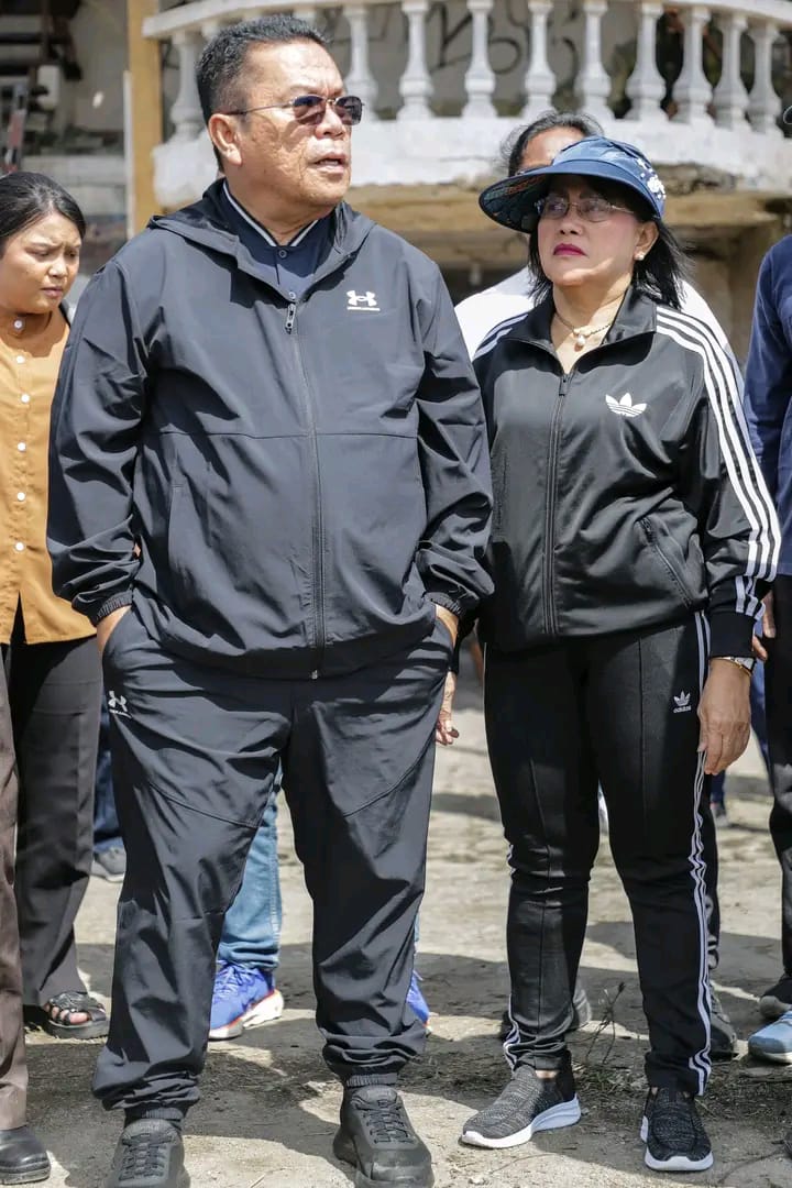 KransNews.com | Siantar – Wali Kota Pematangsiantar Wesly Silalahi SH MKn bersama Ketua TP PKK Kota Pematangsiantar Liswati Sinaga kembali meninjau pembenahan Stadion Sang Naualuh, Jalan Stadion Kelurahan Sukadame Kecamatan Sianțar Utara, Sabtu (15/03/2025) pagi. Kedatangan Wesly disambut Sekretaris Daerah (Sekda) Junaedi Antonius Sitanggang SSTP MSi, sejumlah pimpinan OPD, serta ratusan pegawai yang sedang bergotong royong di stadion.