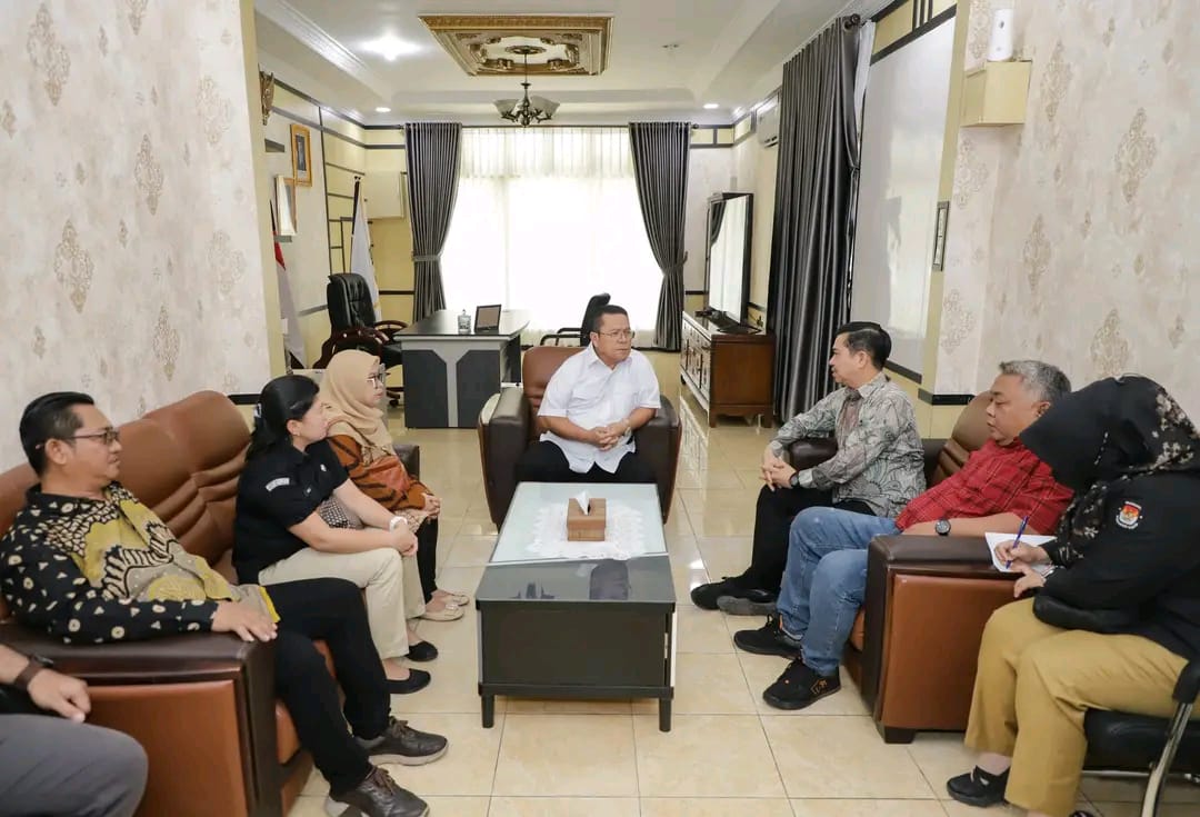 KransNews.com | Siantar – Walikota Pematangsiantar Wesly Silalahi SH MKn menerima audiensi Komisi Pemilihan Umum (KPU) Kota Pematangsiantar. Audiensi bertempat di ruang kerja rumah dinas Wali Kota Pematangsiantar, Jalan MH Sitorus Kelurahan Teladan Kecamatan Siantar Barat, Rabu (12/03/2025) pagi.
