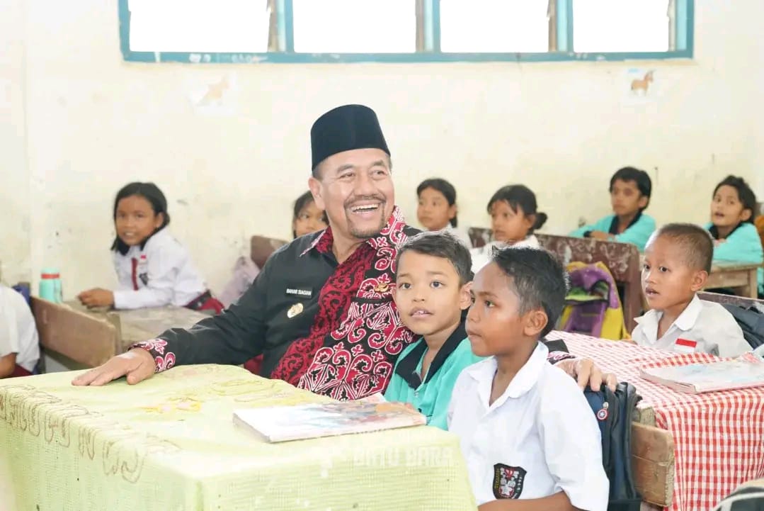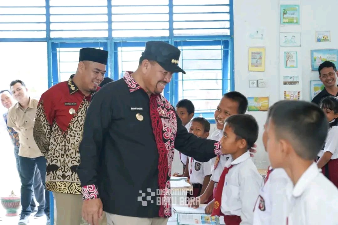Bupati dan Wakil Bupati Batu Bara terlihat bersemangat menyapa para pelajar dan menanyakan kelengkapan peralatan sekolah yang dibutuhkan.
