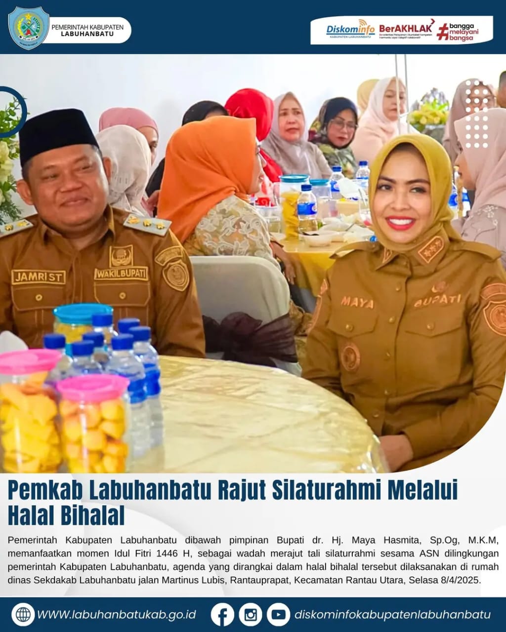 KransNews.com | Labuhanbatu – Pemerintah Kabupaten Labuhanbatu dibawah pimpinan Bupati dr. Hj. Maya Hasmita, Sp.OG, M.K.M, memanfaatkan momen Idul Fitri 1446 H, sebagai wadah merajut tali silaturrahmi sesama ASN di lingkungan pemerintah Kabupaten Labuhanbatu, agenda yang dirangkai dalam halal bihalal tersebut dilaksanakan di rumah dinas Sekdakab Labuhanbatu jalan Martinus Lubis, Rantauprapat, Kecamatan Rantau Utara, Selasa 8/4/2025.