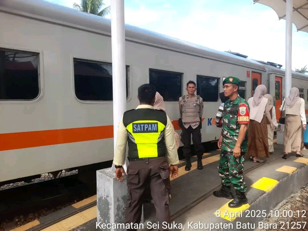 KransNews.com | Simalungun – Personil Polsek Perdagangan melaksanakan pengamanan arus balik Lebaran di Stasiun Kereta Api Bandar Tinggi, Nagori Bandar Tinggi, Kecamatan Bandar Maailam, Kabupaten Simalungun, Selasa, 08 April 2025, mulai pukul 08.00 WIB.