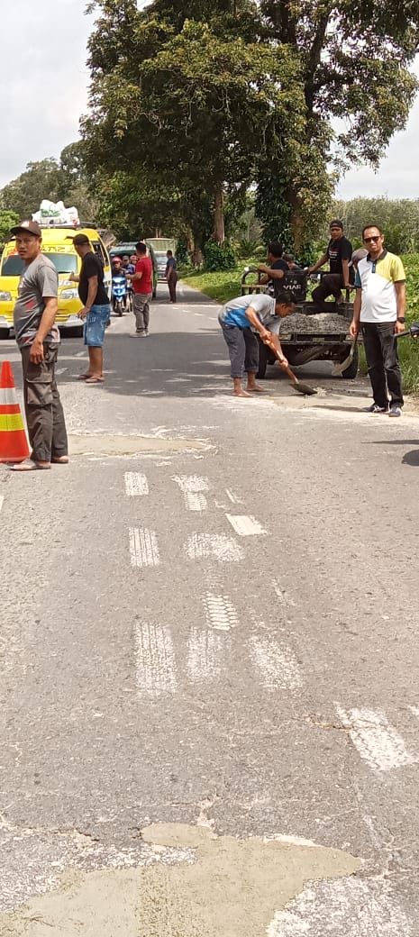 Perbaikan dilakukan mulai dari depan Kantor Kebun Bangun hingga ke arah Kota Siantar. Dengan menambal lubang dengan semen dan batu, beberapa karyawan terlihat bergotong royong untuk proses perbaikannya.