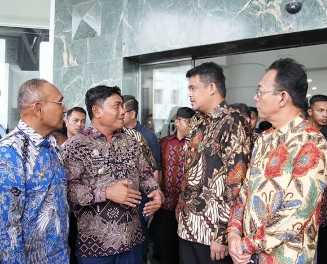 Wakil Bupati Deli Serdang, Lom Lom Suwondo SS dan bupati/walikota se-Sumatera Utara mengikuti Sosialisasi dan Koordinasi Pembentukan Sekolah Rakyat serta Dialog Pilar-pilar Sosial di Provinsi Sumatera Utara bersama Menteri Sosial (Mensos) Drs.H.Syaifullah Yusuf di Aula Rajainal Siregar, Jalan Pangeran Diponogoro, Medan, 11 April 2025.