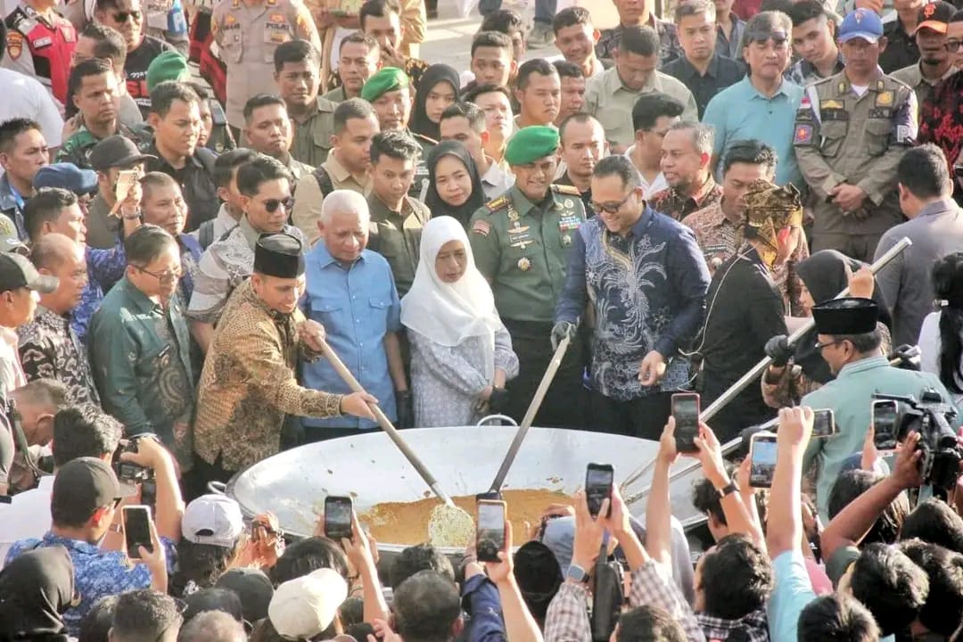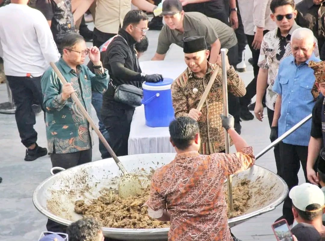 Acara “Mangan Baggal” ini semakin semarak dengan kehadiran chef nasional Bobon Santoso, yang memimpin langsung prosesi memasak massal menggunakan peralatan berukuran besar. Aroma bumbu andaliman yang khas menyebar lokasi acara, menciptakan suasana penuh semangat dan kebersamaan di antara masyarakat yang hadir.