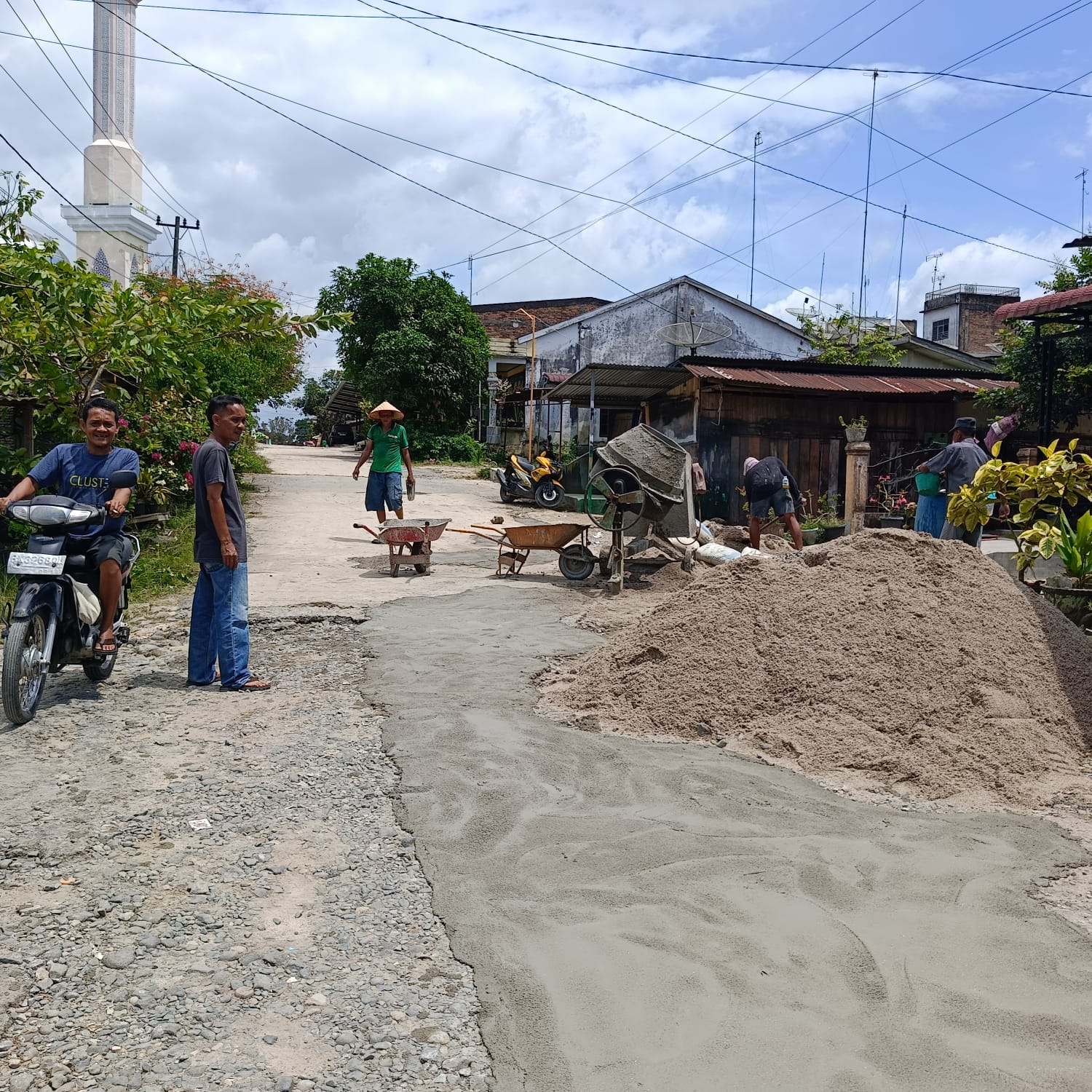 Saat ditemui di lokasi, Muhammad Ihsan salah seorang warga menyebut setiap warga memiliki peran masing-masing ada yang bantu uang, bahan bangunan, meminjamkan molen (mesin pengaduk semen) dan bantuannya lainnya.