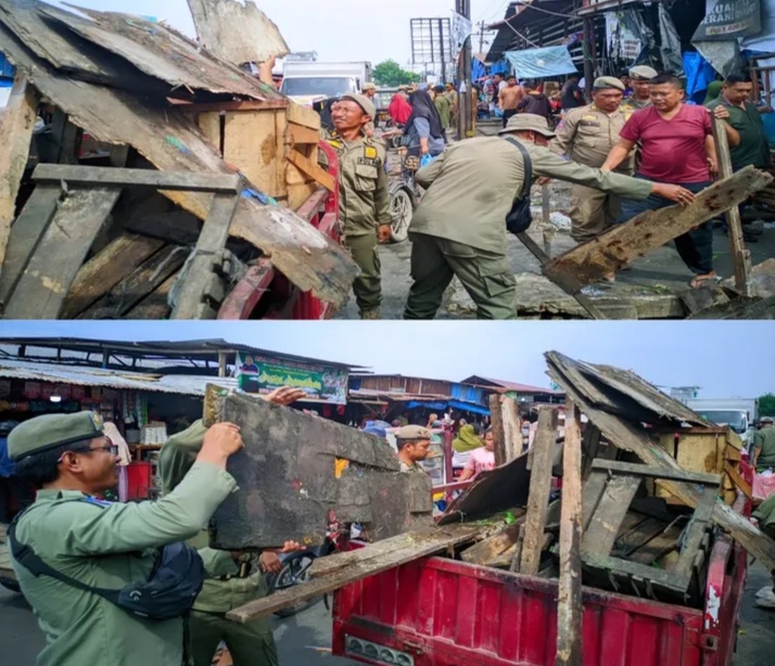 KransNews.com | Deli Serdang – Satuan Polisi Pamong Praja Kabupaten Deli Serdang bersama Trantib Kecamatan Percut Sei Tuan melakukan penertiban pedagang kaki lima (PKL) yang berjualan di atas badan jalan dan di atas fasum Pajak Gambir, Selasa (03/06/2025).