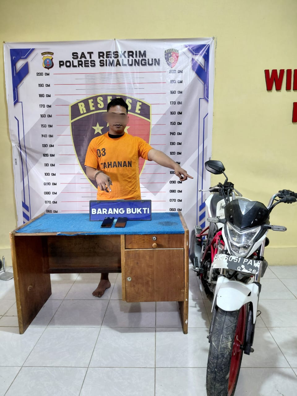 Andi Putra Sipayung (32), warga Huta Sidomulyo, Nagori Laras Dua, Kecamatan Siantar, Kabupaten Simalungun, diamankan bersama barang bukti berupa sepeda motor Honda dan dua unit handphone yang dicuri dari rumah korban. Saat penangkapan, seluruh barang bukti berhasil diamankan dalam kondisi utuh.