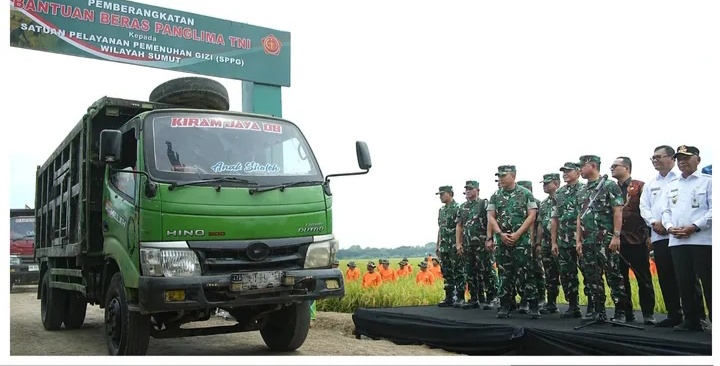 Dalam kegiatan panen raya ini, turut dilepas secara simbolis bantuan 40 ton beras sebagai bagian dari program Strategi Pemenuhan Gizi (SPPG) untuk mendukung ketahanan pangan di wilayah Sumatera Utara.