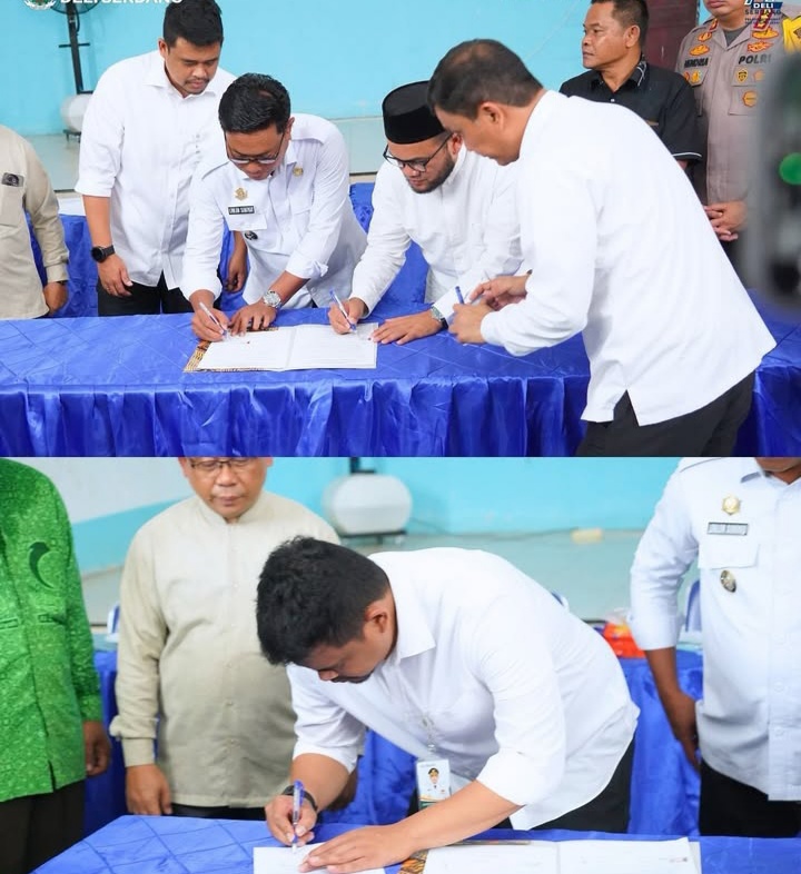 KransNews.com | Deli Serdang – Persoalan antara Pemerintah Kabupaten Deli Serdang dengan Pengurus Daerah Al Jam’iyatul Washliyah Deli Serdang terkait penggunaan gedung sekolah di Desa Petumbukan, Kecamatan Galang, akhirnya menemui titik terang. Melalui pertemuan yang dihadiri langsung oleh Gubernur Sumatera Utara, H. Muhammad Bobby Afif Nasution, SE., MM, kedua belah pihak menyepakati kerja sama demi kepentingan pendidikan anak bangsa.