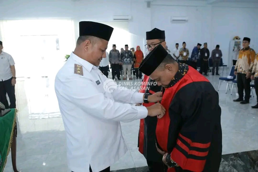 Prosesi pelantikan ditandai dengan pemasangan jubah secara simbolis kepada perwakilan Dewan Juri oleh Wakil Bupati Asahan.