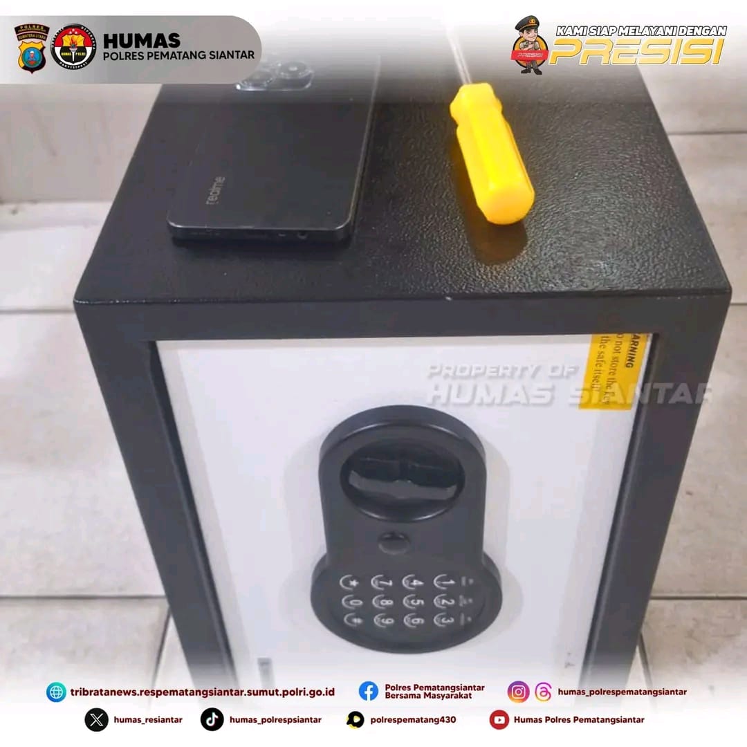 Sehingga pelaku beserta barang bukti berupa 1 buah berangkas warna hitam putih, 1 unit Handphone (HP) Realmi C 53 warna hitam dan 1 buah Obeng warna Kuning diamankan ke ruangan pemeriksaan Unit Jatanras Sat Reskrim Polres Pematangsianțar.