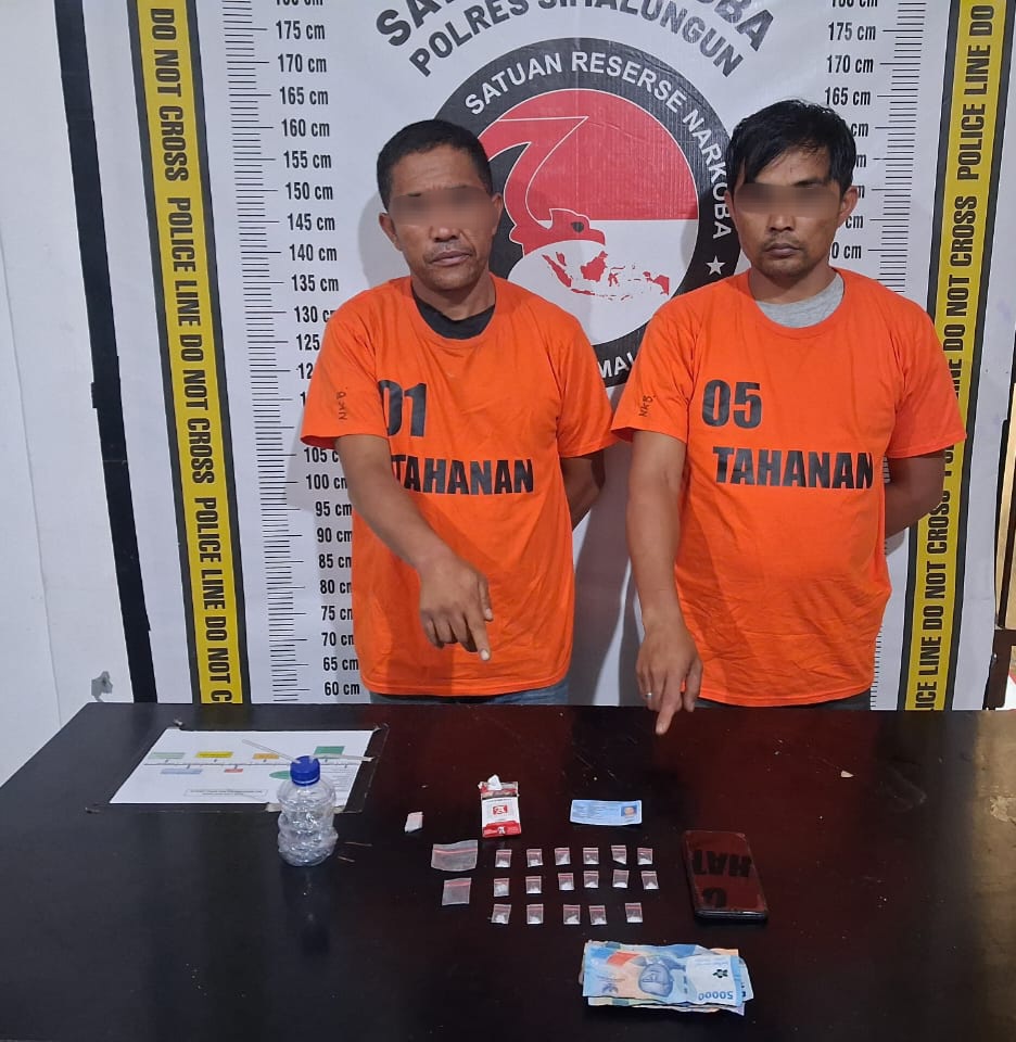 “Saat dilakukan penangkapan, kedua pelaku sedang duduk di gubuk sambil mengonsumsi sabu dan menunggu kedatangan pembeli,” ungkap Kasat Narkoba Polres Simalungun.