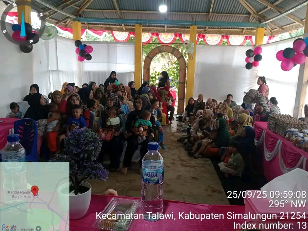 Kegiatan yang bertujuan meningkatkan gizi dan kesehatan balita ini berlangsung lancar dan mendapat antusiasme warga. Hadir dalam kegiatan tersebut Pj. Pangulu Banjar Ulu Heri Kusmawan, S.Pd.MM, Pendamping Desa Agus, Ketua Maujana Basuki, perangkat desa, tokoh masyarakat, tokoh agama, serta para penerima manfaat.